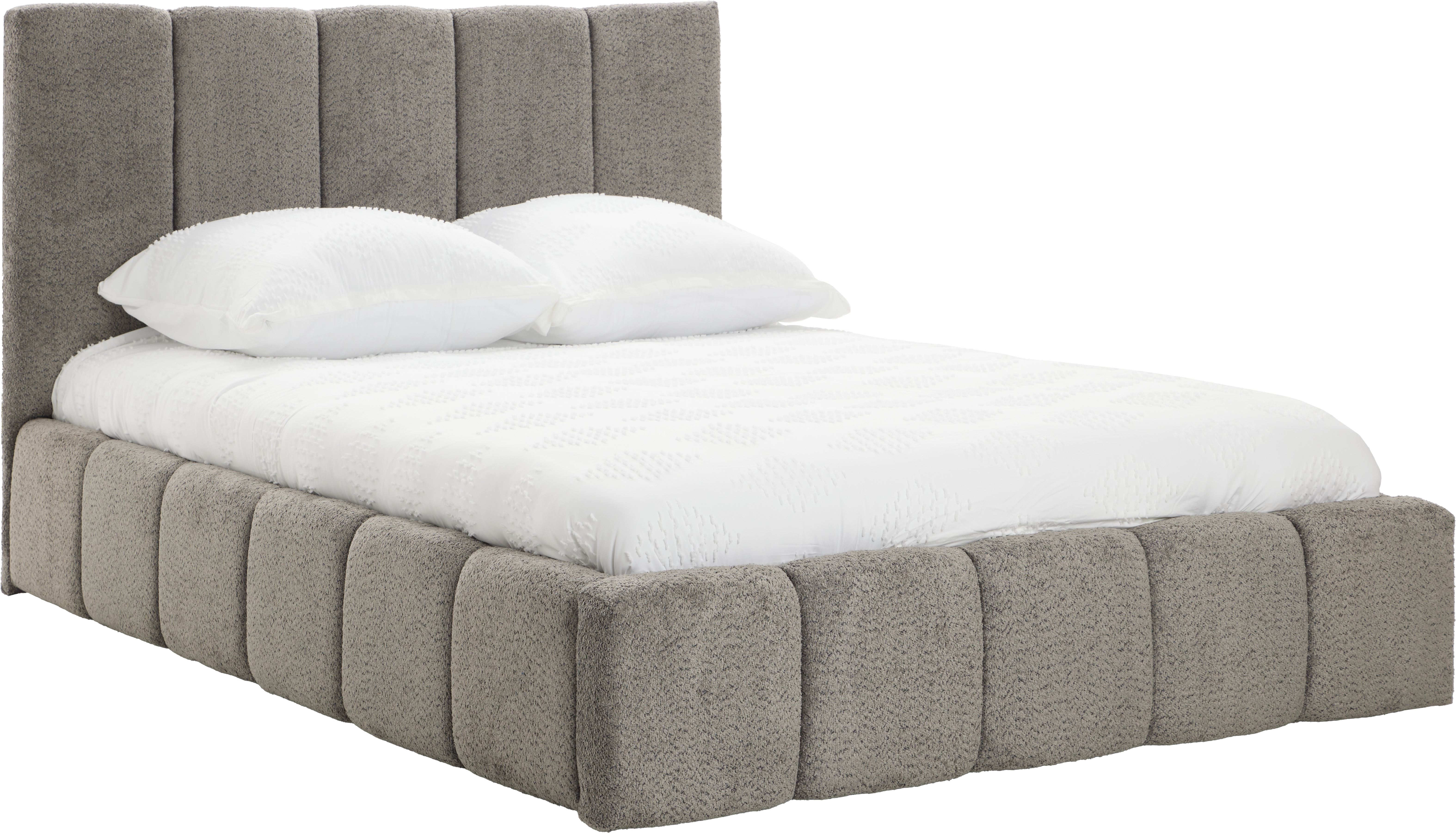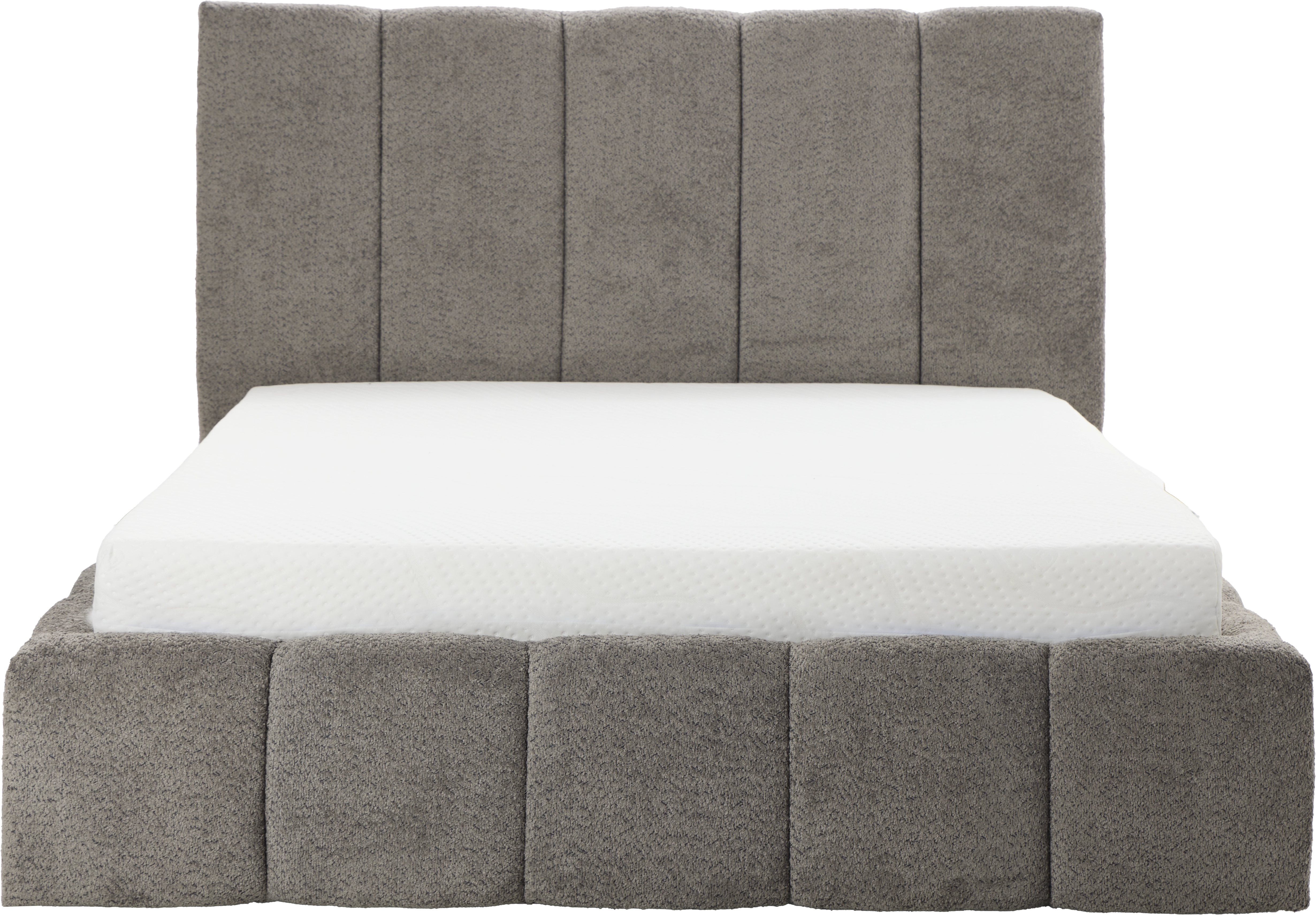 Łóżko tapicerowane „BIANKO” to stylowy i elegancki mebel, który doskonale łączy nowoczesny design z komfortem użytkowania. Utrzymane w wyrazistym kolorze Boucle grafit (B5), wyróżnia się miękkim obiciem o charakterystycznej fakturze tkaniny boucle, nadającej wnętrzu głębi i przytulnego charakteru. Wysokie, pionowo pikowane wezgłowie stanowi ozdobny akcent, jednocześnie zapewniając wygodne oparcie podczas odpoczynku. Solidna konstrukcja łóżka gwarantuje trwałość i stabilność przez lata użytkowania.