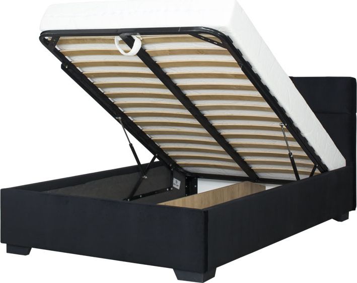 Łóżko tapicerowane 120 Sawona (plusz czarny) ze stelażem i pojemnikiem