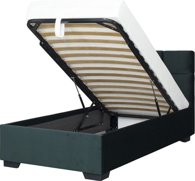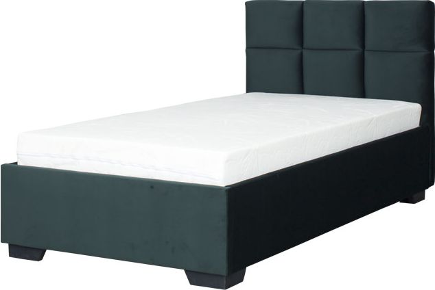 Łóżko tapicerowane 90 Sawona (plusz zielony) ze stelażem i pojemnikiem