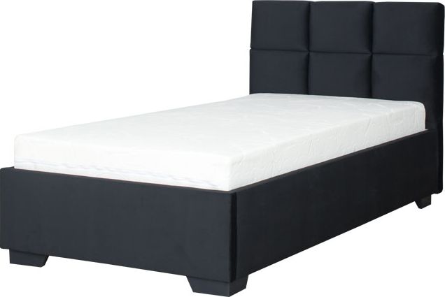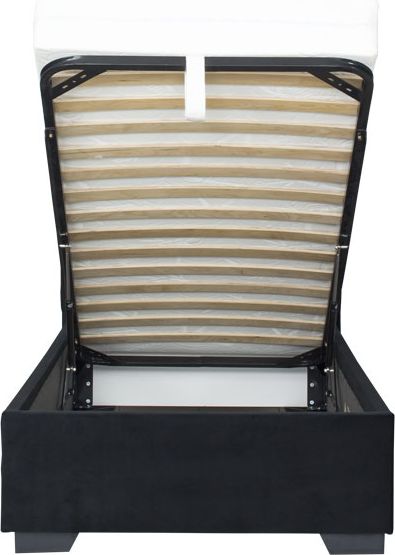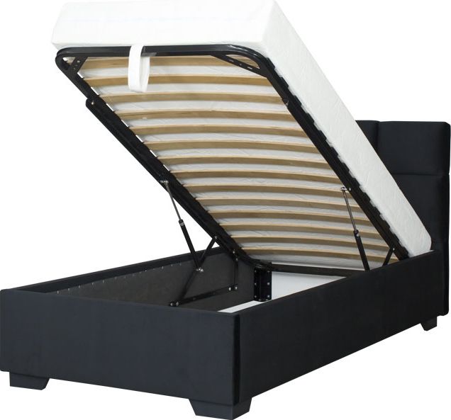 Łóżko tapicerowane 90 Sawona (plusz czarny) ze stelażem i pojemnikiem