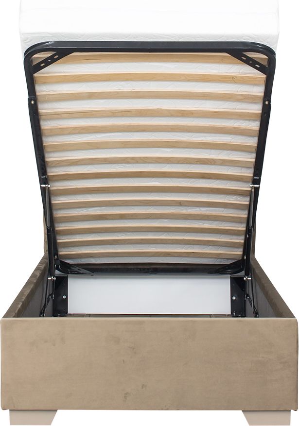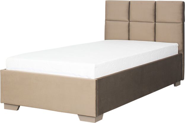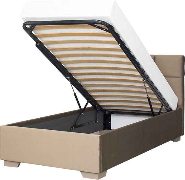 Łóżko tapicerowane 90 Sawona (plusz brąz) ze stelażem i pojemnikiem