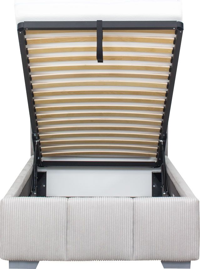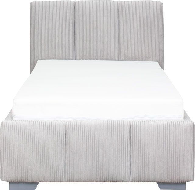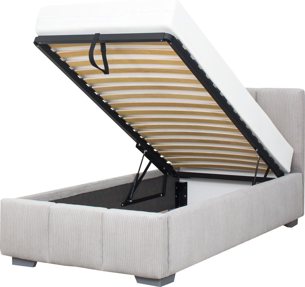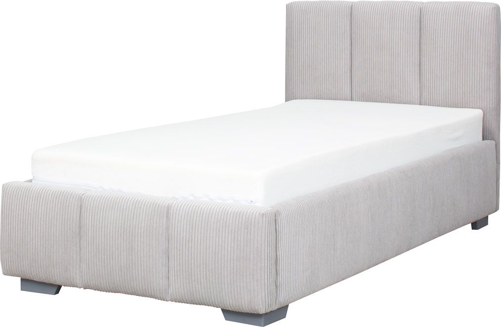 Łóżko tapicerowane 90 Mindy (sztruks szary) ze stelażem i pojemnikiem