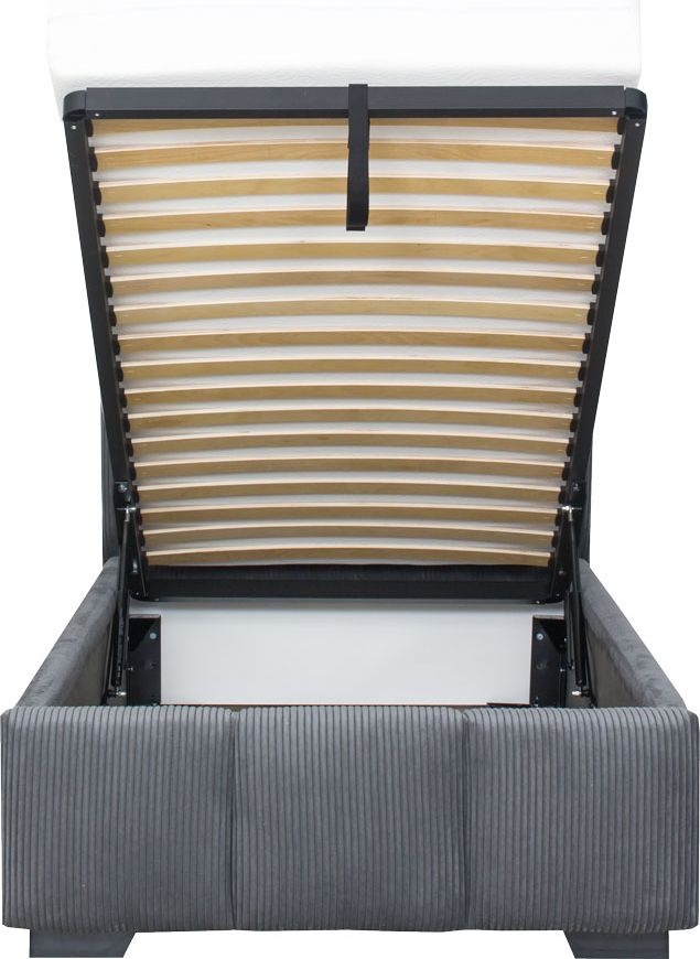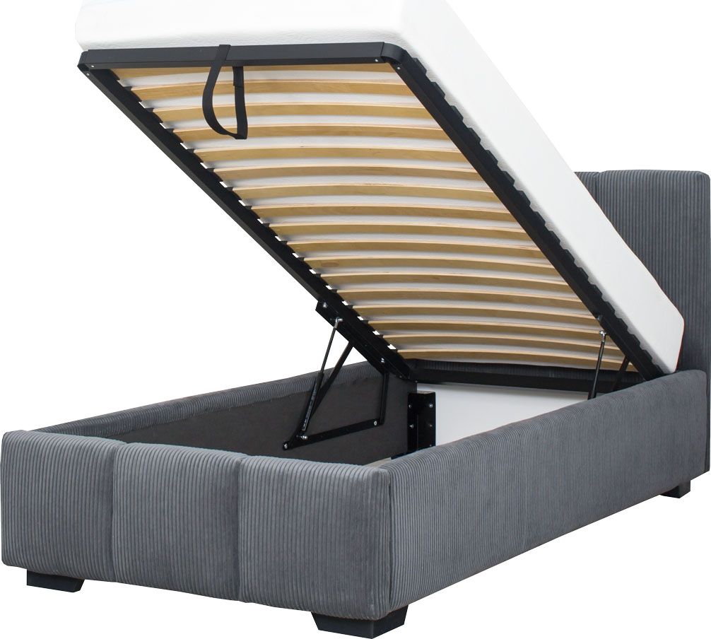 Łóżko tapicerowane 90 Mindy (sztruks grafit) ze stelażem i pojemnikiem