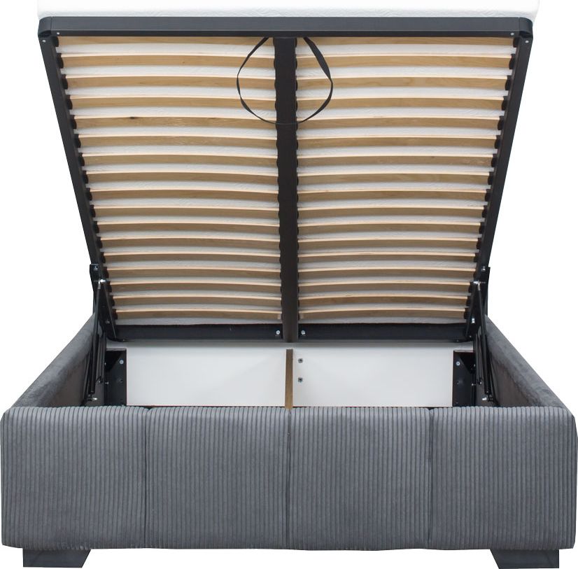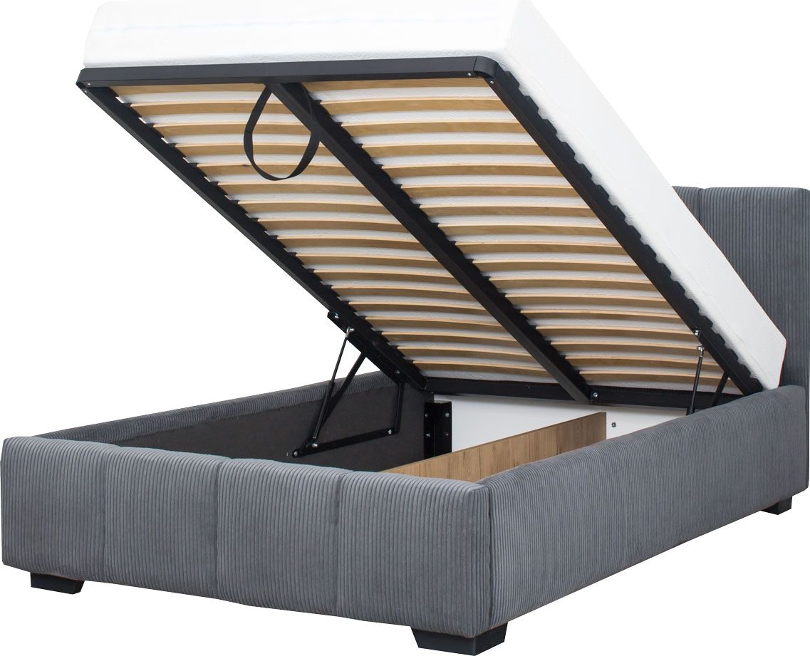 Łóżko tapicerowane 120 Mindy (sztruks grafit) ze stelażem i pojemnikiem
