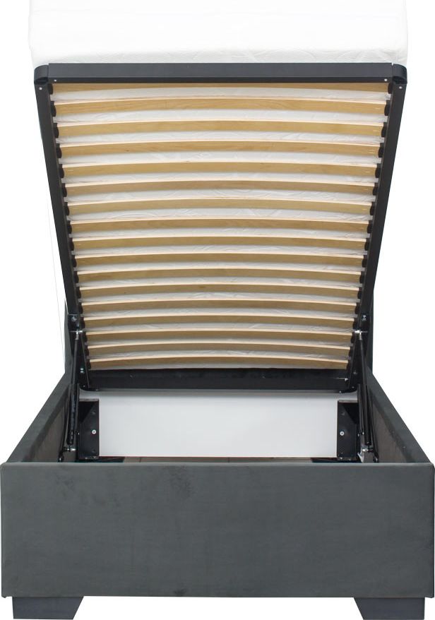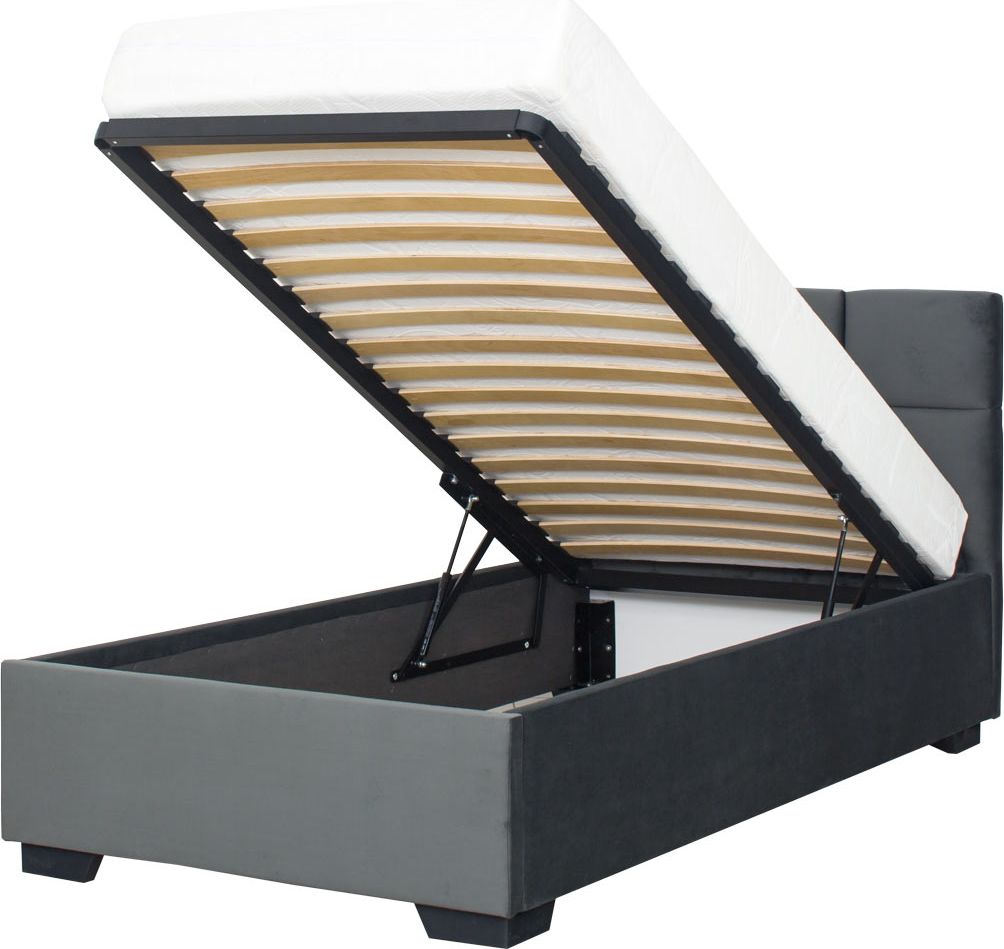 Łóżko tapicerowane 90 Sawona (plusz grafit) ze stelażem i pojemnikiem