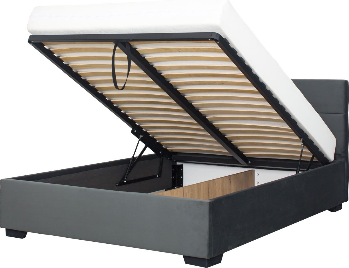 Łóżko tapicerowane 120 Sawona (plusz grafit) ze stelażem i pojemnikiem