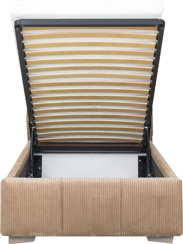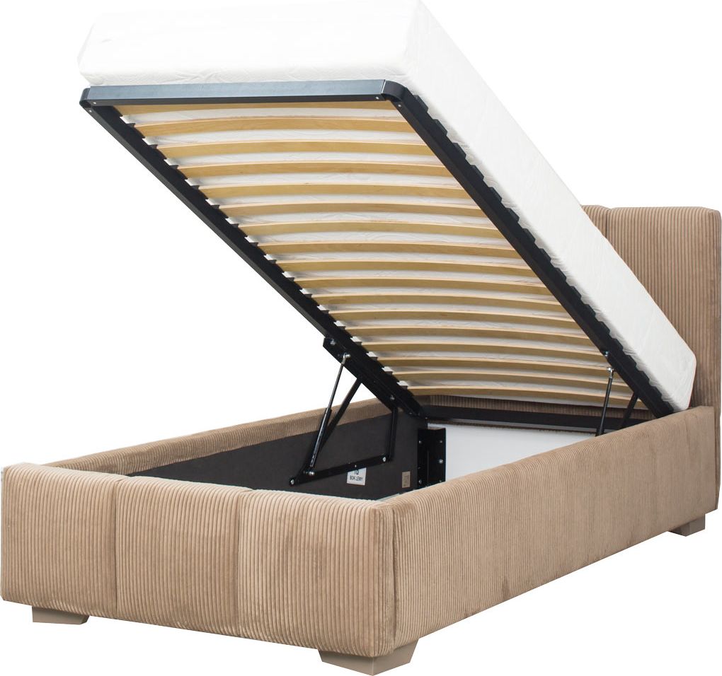 Łóżko tapicerowane 90 Mindy (sztruks brąz) ze stelażem i pojemnikiem