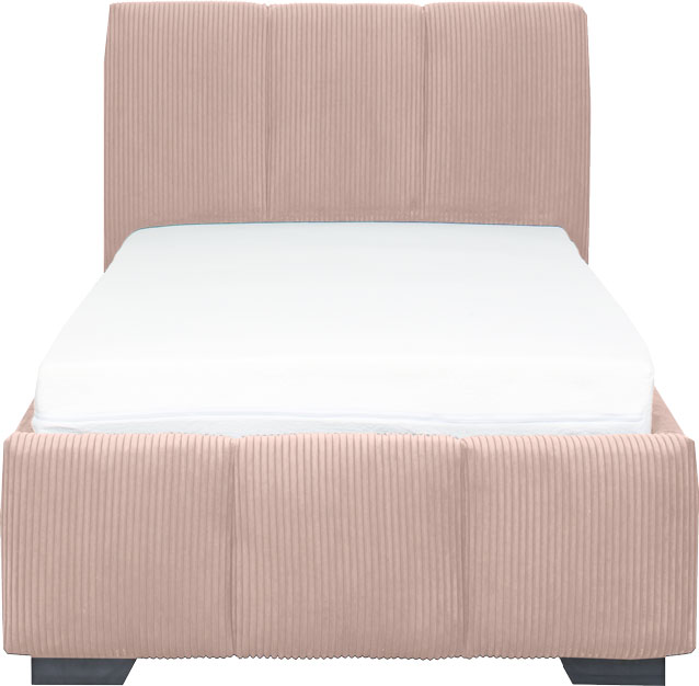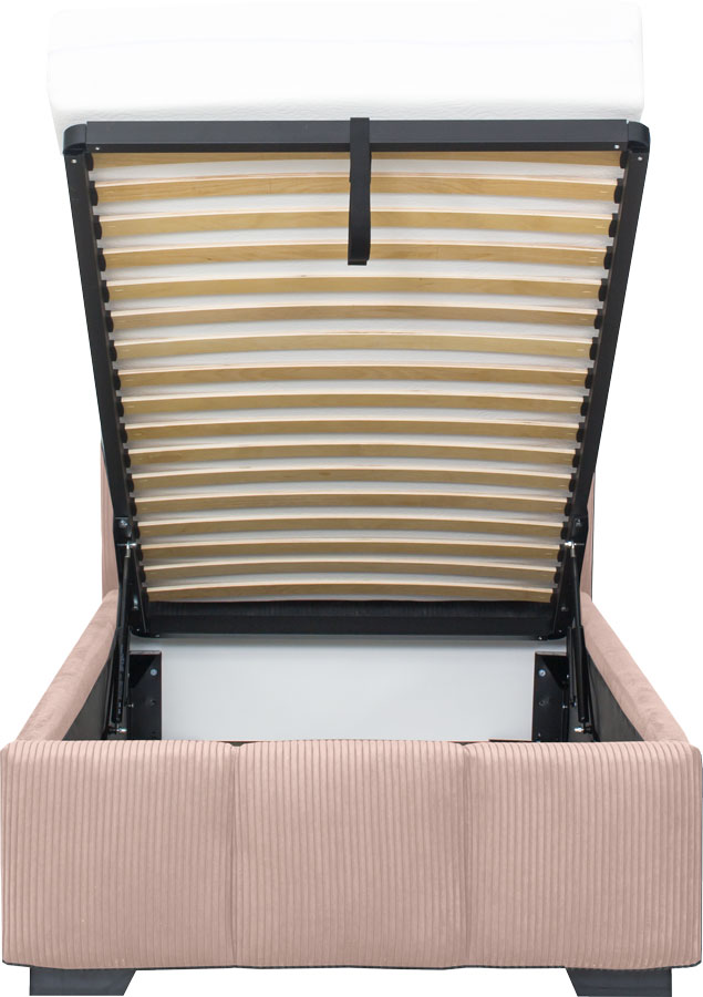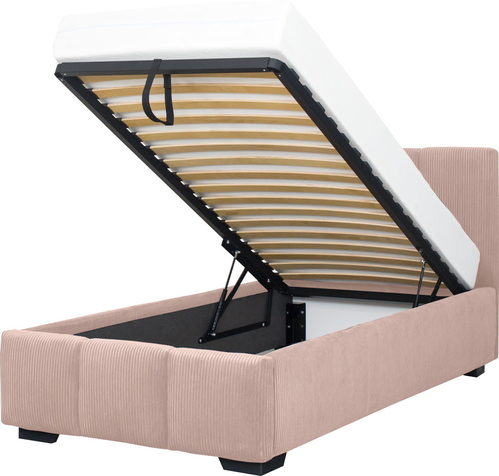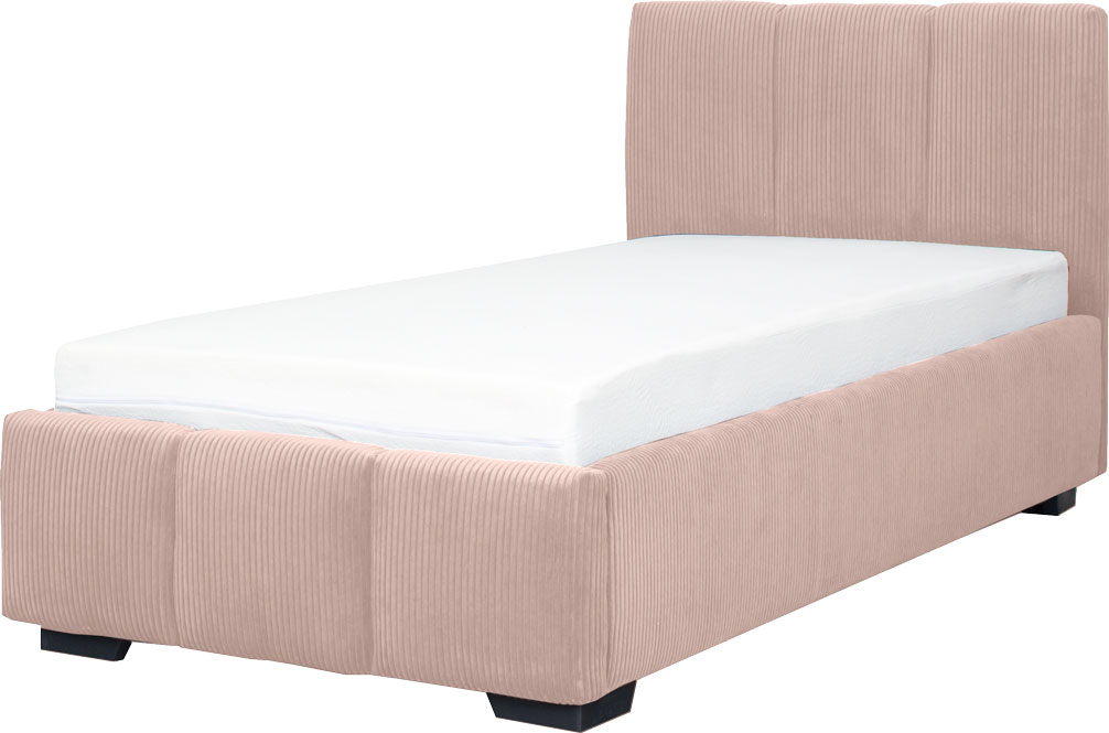 Łóżko tapicerowane 90 Mindy (sztruks róż) ze stelażem i pojemnikiem
