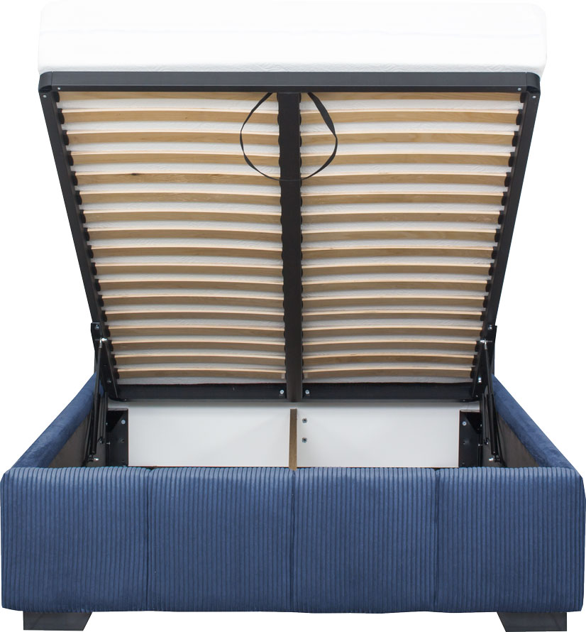 Łóżko tapicerowane 120 Mindy (sztruks granat) ze stelażem i pojemnikiem