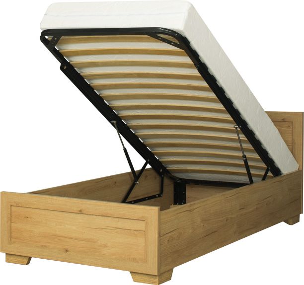 Łóżko 1-osobowe 90 Majorka (dąb Soma ciemny) ze stelażem i pojemnikiem
