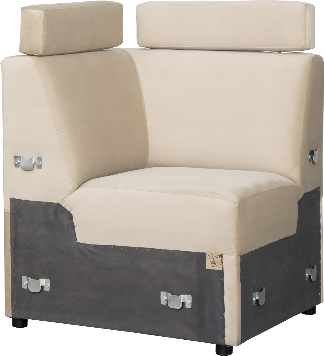 Siedzisko narożne stanowi element narożnika i nadaje się do montażu w dowolnej konfiguracji. Możliwe jest połączenie segmentu z dowolnym innym siedziskiem, bokiem lub końcówką narożnika.
