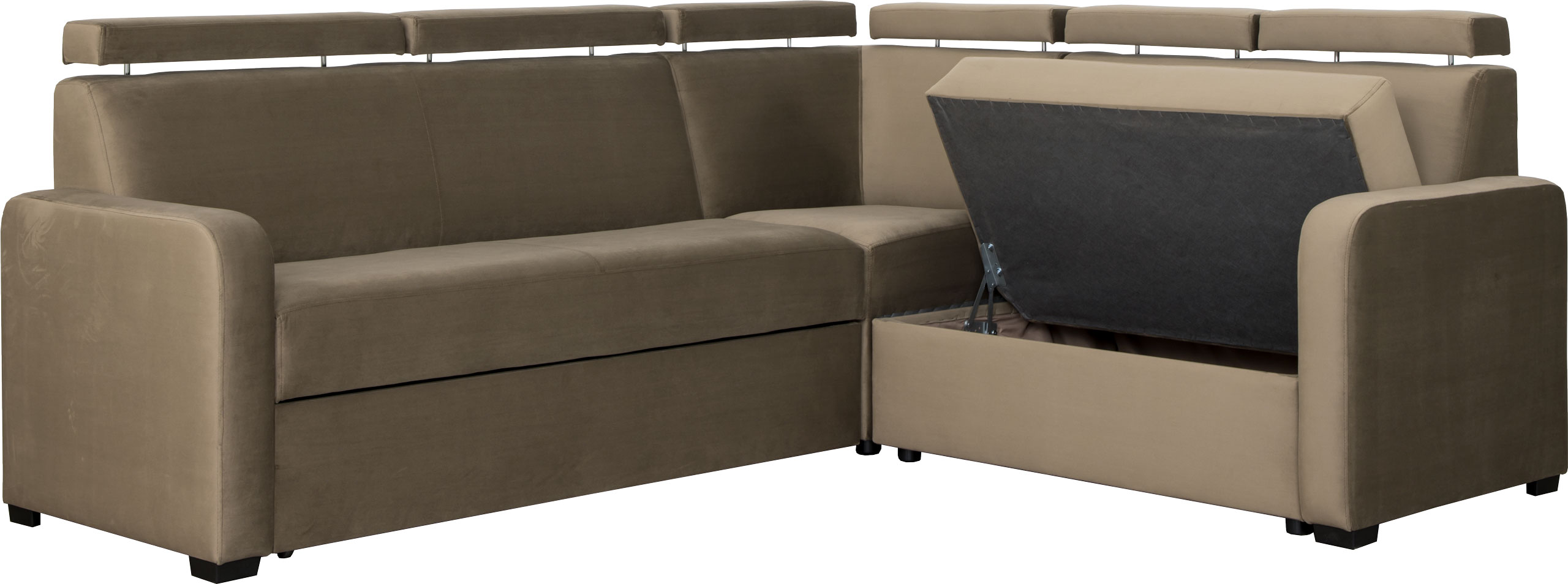 Narożnik Lazur z siedziskiem 3-os. rokładanym i 2-os. (plusz brąz)
