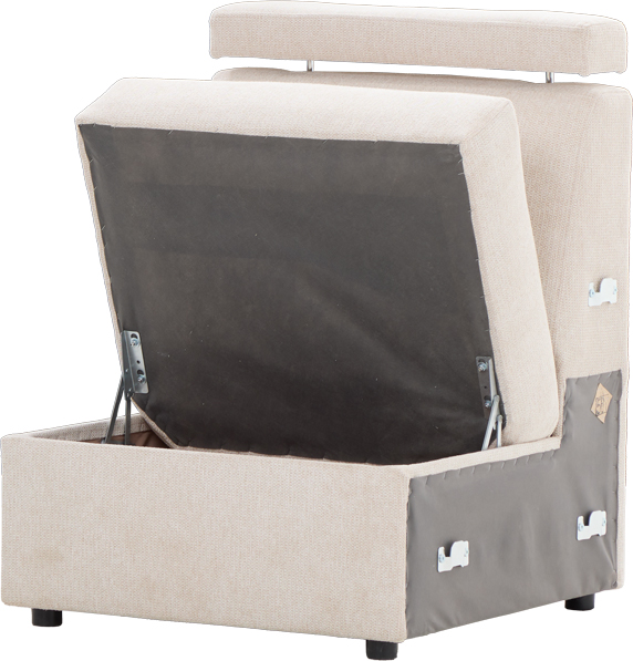 Siedzisko 1-osobowe z pojemnikiem LAZUR R1 (mat. Rojal beż) to praktyczny i wygodny element narożnika, który łączy komfort użytkowania z dodatkowym miejscem do przechowywania. Jasny odcień Rojal beż nadaje bryle lekkości i wprowadza do wnętrza przytulny, elegancki charakter.
