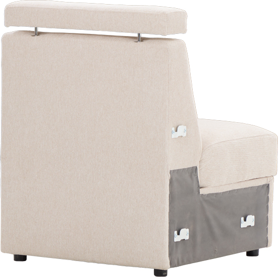 Siedzisko stanowi część systemu modułowego i nadaje się do montażu w dowolnej konfiguracji. Możliwe jest połączenie segmentu z innym siedziskiem, bokiem lub końcówką narożnika, co pozwala na swobodne dopasowanie układu mebla do przestrzeni.