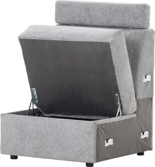 Dodatkowy pojemnik zwiększa funkcjonalność mebla i sprawia, że segment świetnie sprawdza się także jako miejsce do przechowywania koców, poduszek czy innych tekstyliów.
