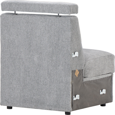 Siedzisko stanowi część systemu modułowego i nadaje się do montażu w dowolnej konfiguracji. Możliwe jest połączenie segmentu z innym siedziskiem, bokiem lub końcówką narożnika, co pozwala na swobodne dopasowanie układu mebla do przestrzeni.