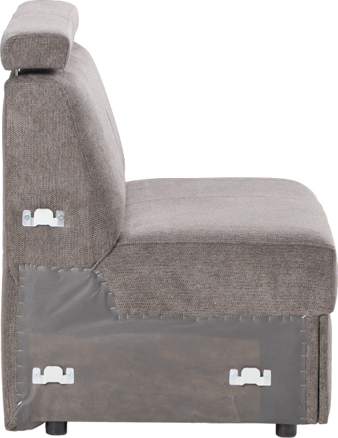 Siedzisko stanowi część systemu modułowego i nadaje się do montażu w dowolnej konfiguracji. Możliwe jest połączenie segmentu z innym siedziskiem, bokiem lub końcówką narożnika, co pozwala na swobodne dopasowanie układu mebla do przestrzeni.