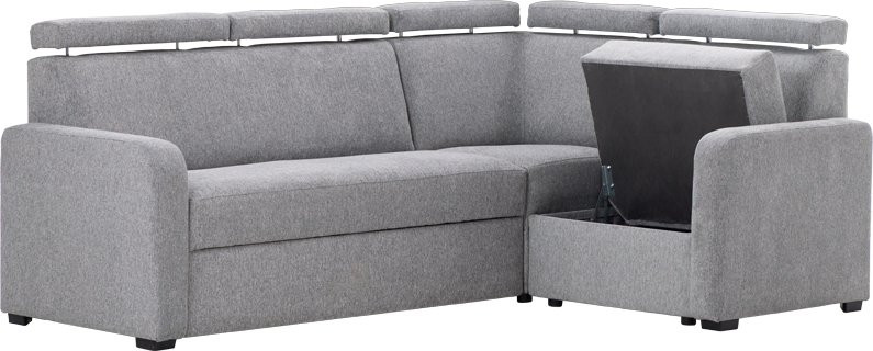 Narożnik posiada również praktyczny pojemnik na przechowywanie, który pomieści koce, poduszki czy inne tekstylia, pomagając utrzymać porządek w salonie.