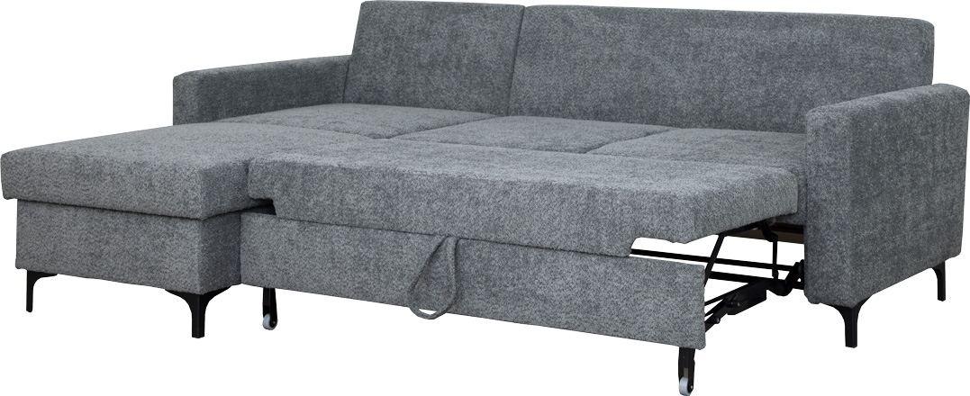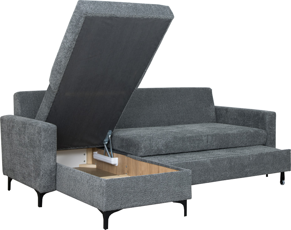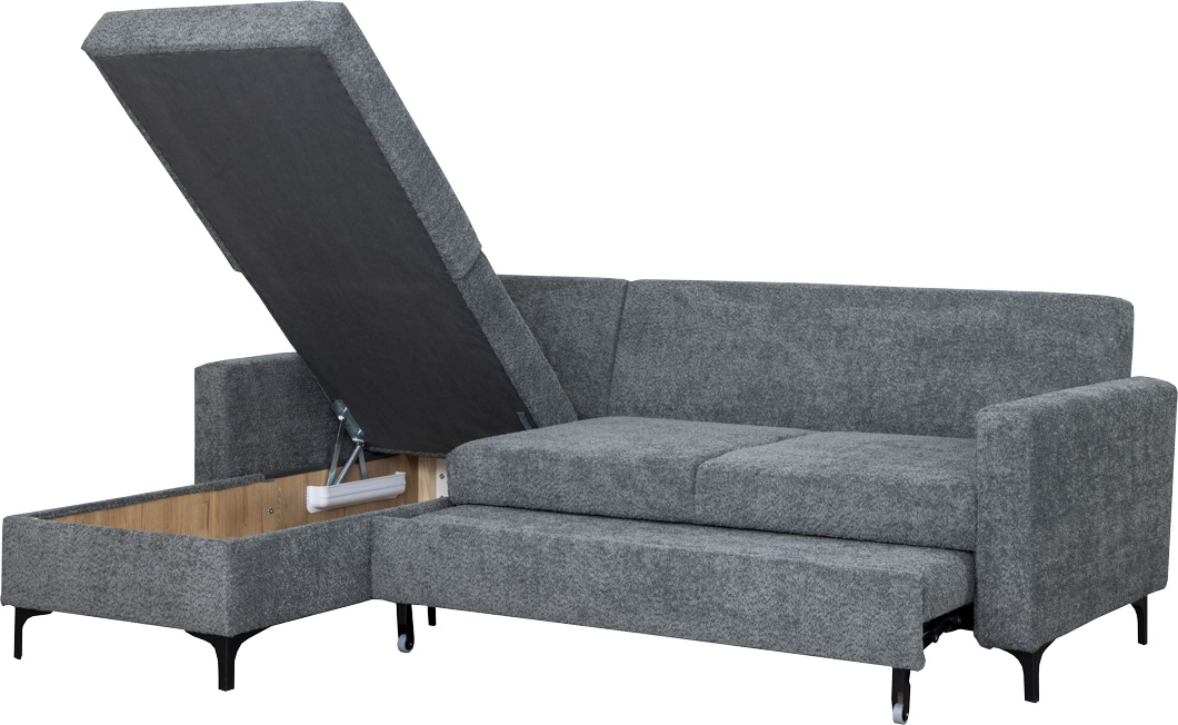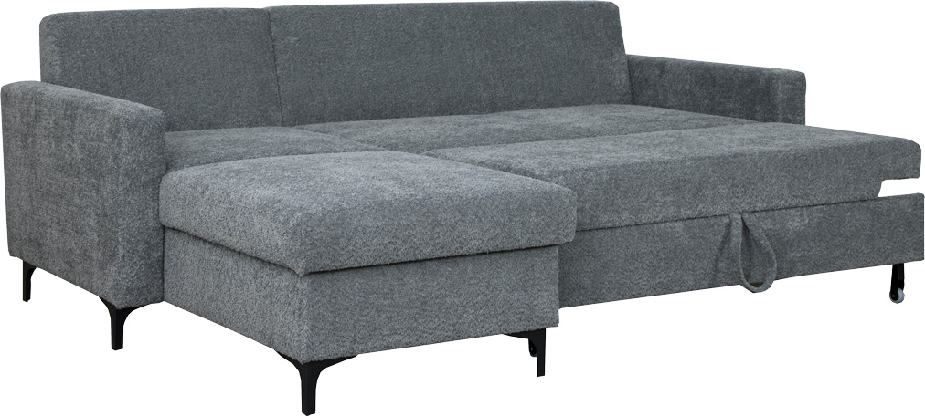 Narożnik tapicerowany Milano w materiale boucle to połączenie elegancji i komfortu. Charakteryzujący się teksturą boucle, materiał ten dodaje narożnikowi subtelnego, luksusowego wyglądu i przyjemności w dotyku. Narożnik wyposażony jest w praktyczną skrzynię na pościel, zapewniając dodatkową przestrzeń do przechowywania. Nowoczesny automat do rozkładania umożliwia szybkie i wygodne przekształcenie narożnika w wygodne łóżko. Metalowe stopki w kolorze czarnym nie tylko podkreślają nowoczesny design, ale również pozwalają na swobodne wjeżdżanie robota sprzątającego, co ułatwia utrzymanie porządku. Narożnik Milano w materiale boucle łączy estetykę z funkcjonalnością, tworząc eleganckie i praktyczne rozwiązanie do każdego wnętrza.