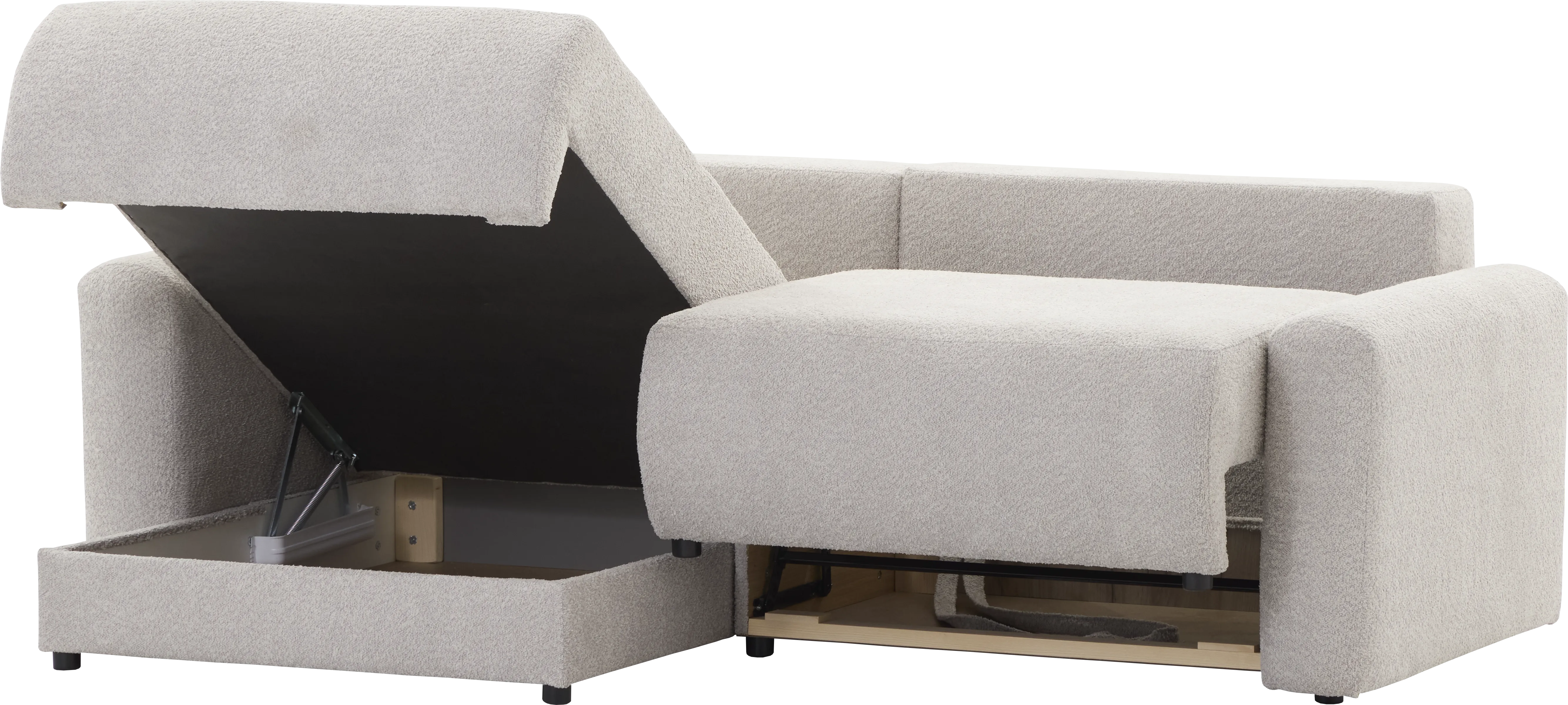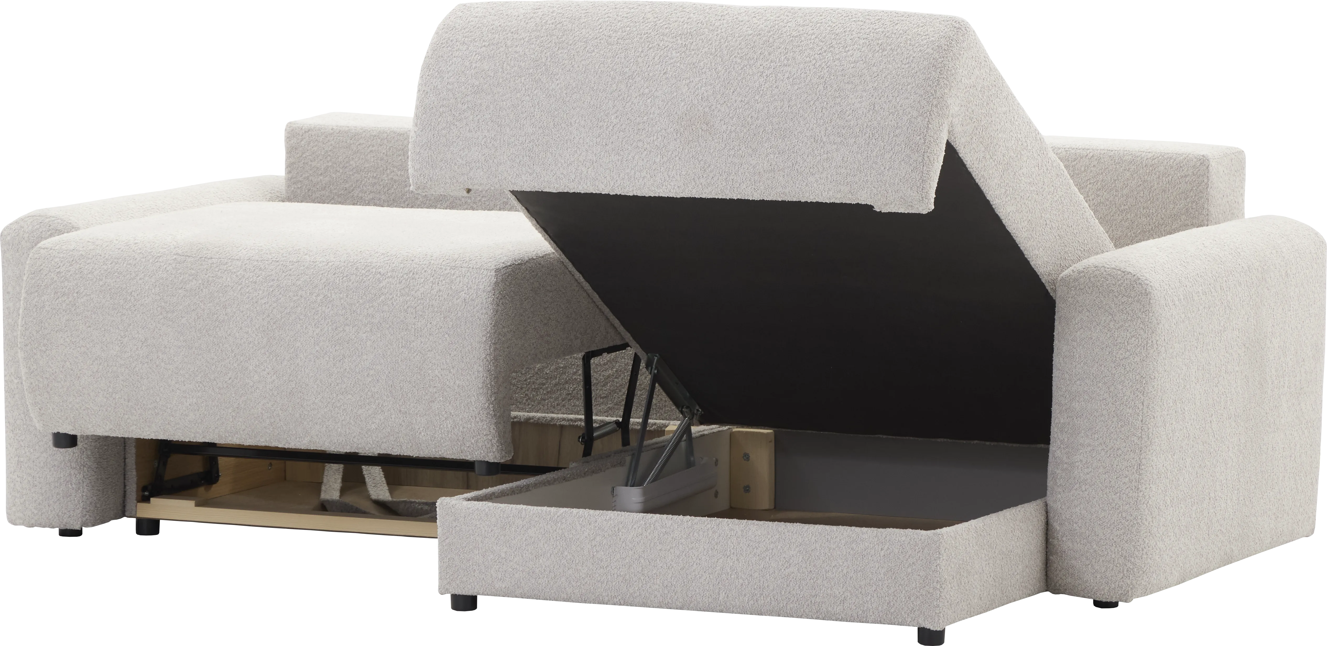 Narożnik (uniwersalny) „SOFTINA” B4 to elegancki i funkcjonalny mebel, który doskonale łączy nowoczesny wygląd z wygodą codziennego użytkowania. Utrzymany w stonowanym kolorze Boucle szary (B4), wyróżnia się miękkim, przyjemnym w dotyku obiciem z tkaniny boucle, które dodaje wnętrzu przytulności i harmonii. Dzięki uniwersalnej konstrukcji, narożnik można ustawić zarówno w wersji prawej, jak i lewej, dopasowując go do układu pomieszczenia. Wyposażony w funkcję spania o powierzchni 202 × 165 cm oraz pojemnik na pościel, łączy styl z praktycznością.