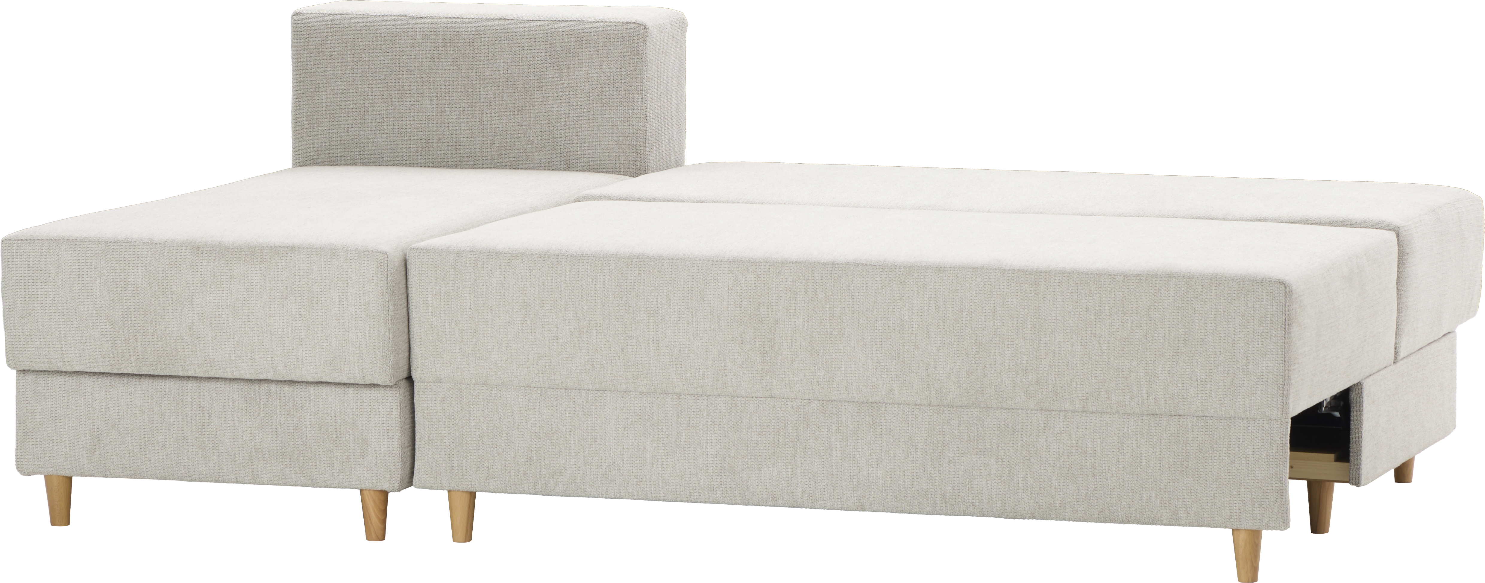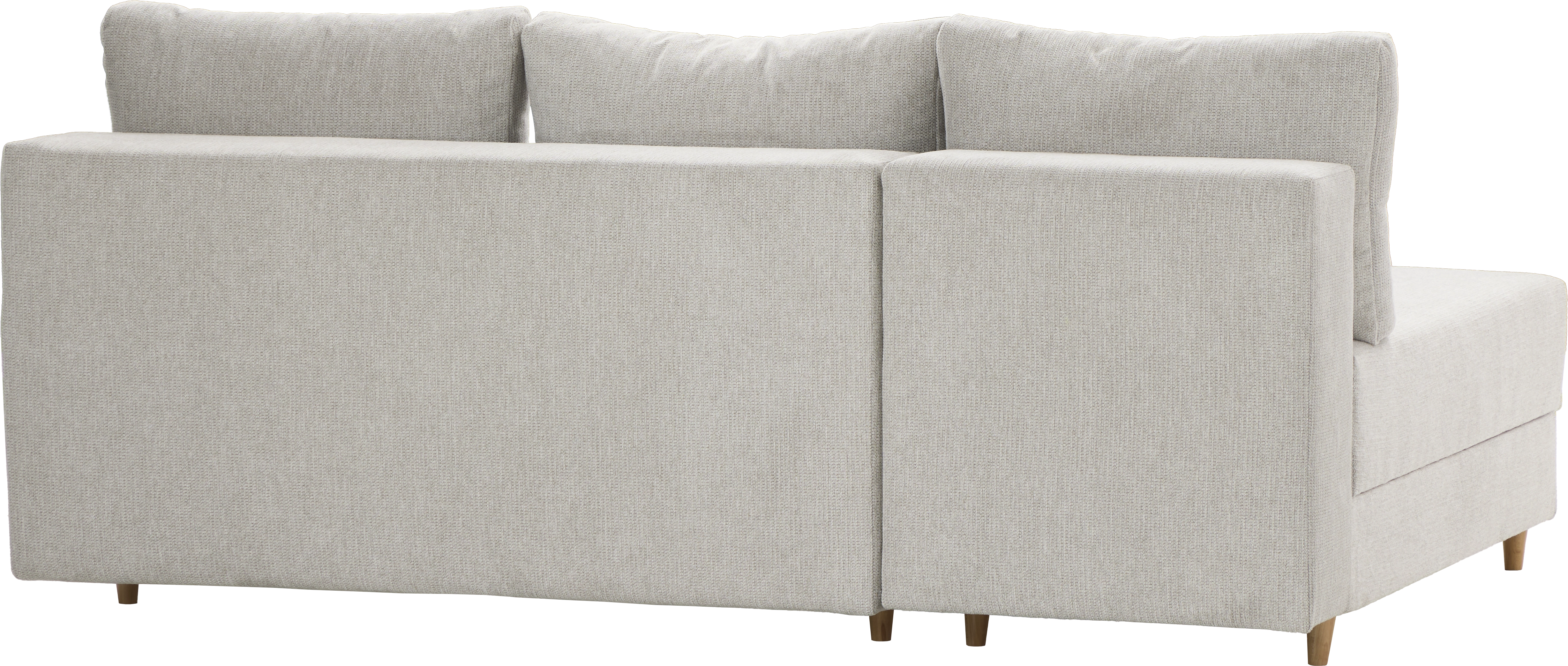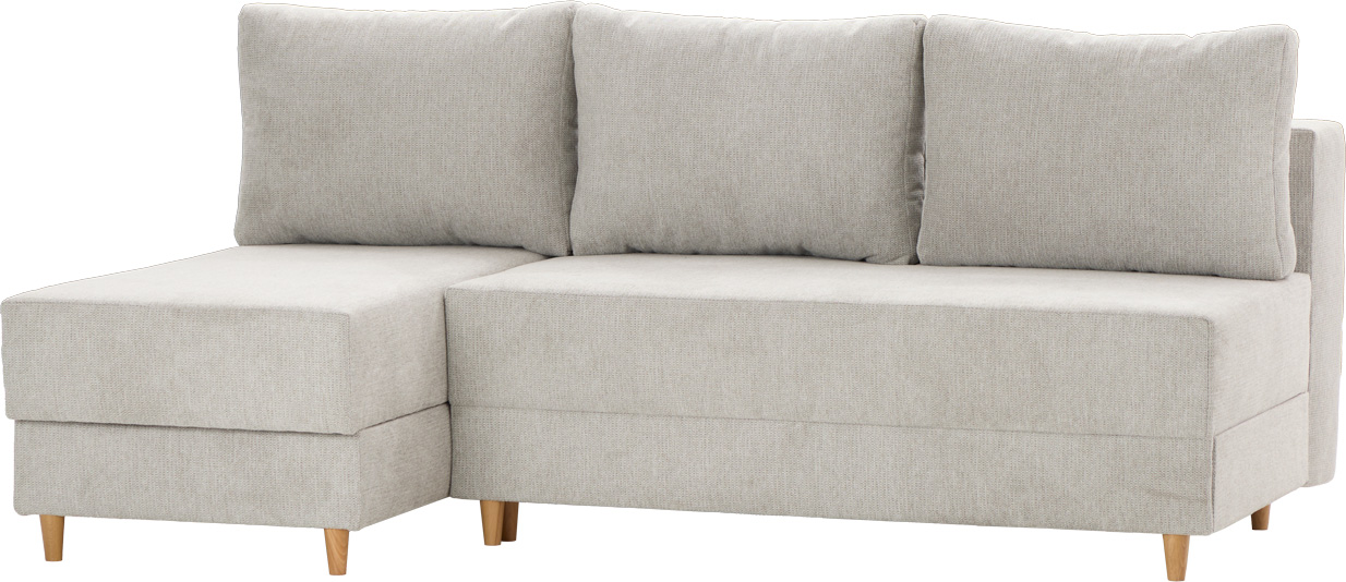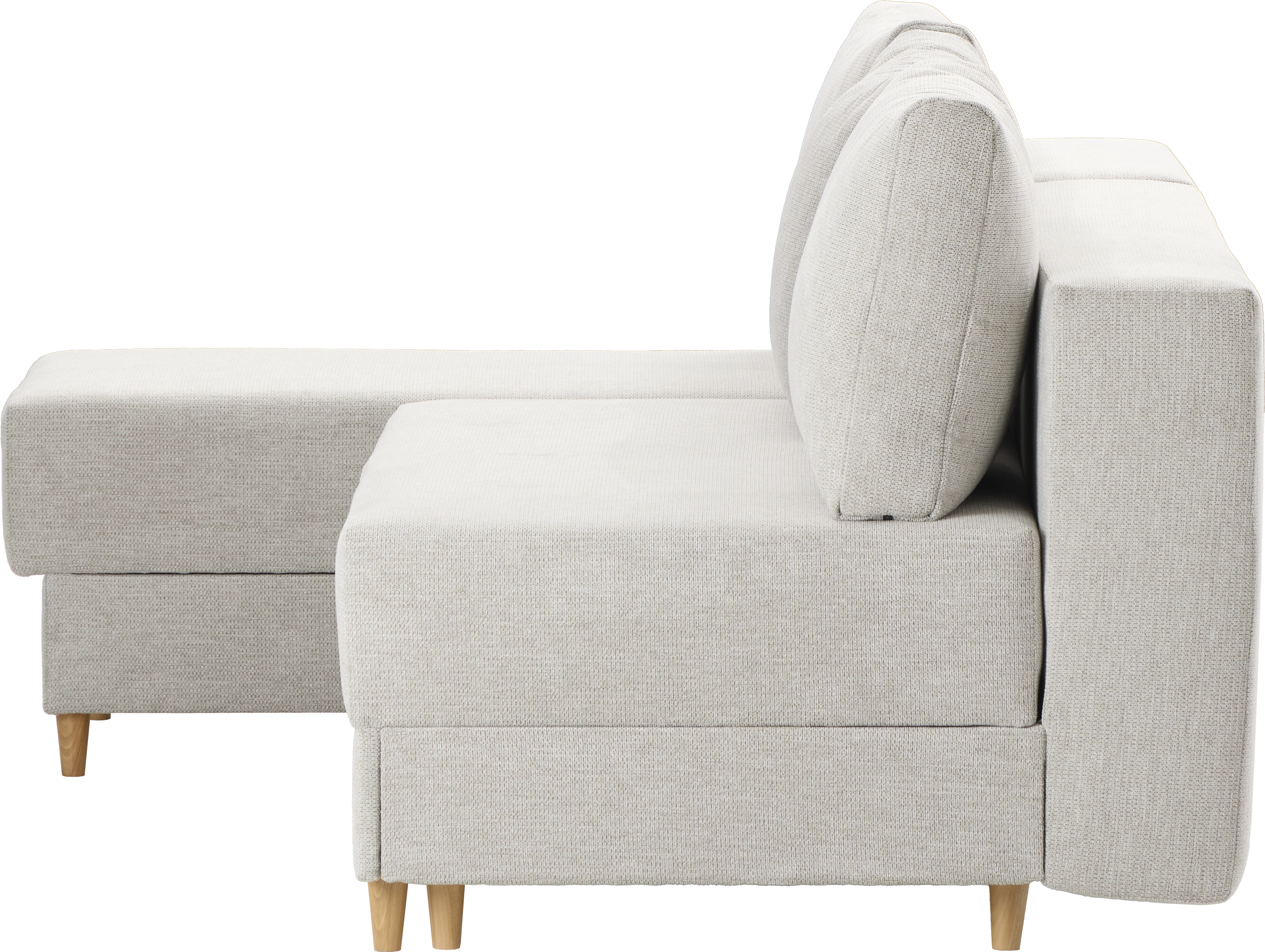 Narożnik „MADRYT” R3 to nowoczesny i funkcjonalny mebel, który doskonale sprawdzi się w salonie, pokoju młodzieżowym lub mniejszej przestrzeni wypoczynkowej. Utrzymany w subtelnym kolorze Rojal jasny szary (R3), wprowadza do wnętrza lekkość, elegancję i przytulny charakter. Model wyposażony jest w funkcję spania o powierzchni 143 × 206 cm, dzięki czemu z łatwością zamienia się w wygodne miejsce do nocnego odpoczynku. Dodatkowym atutem jest pojemnik na pościel, który zapewnia praktyczną przestrzeń do przechowywania.