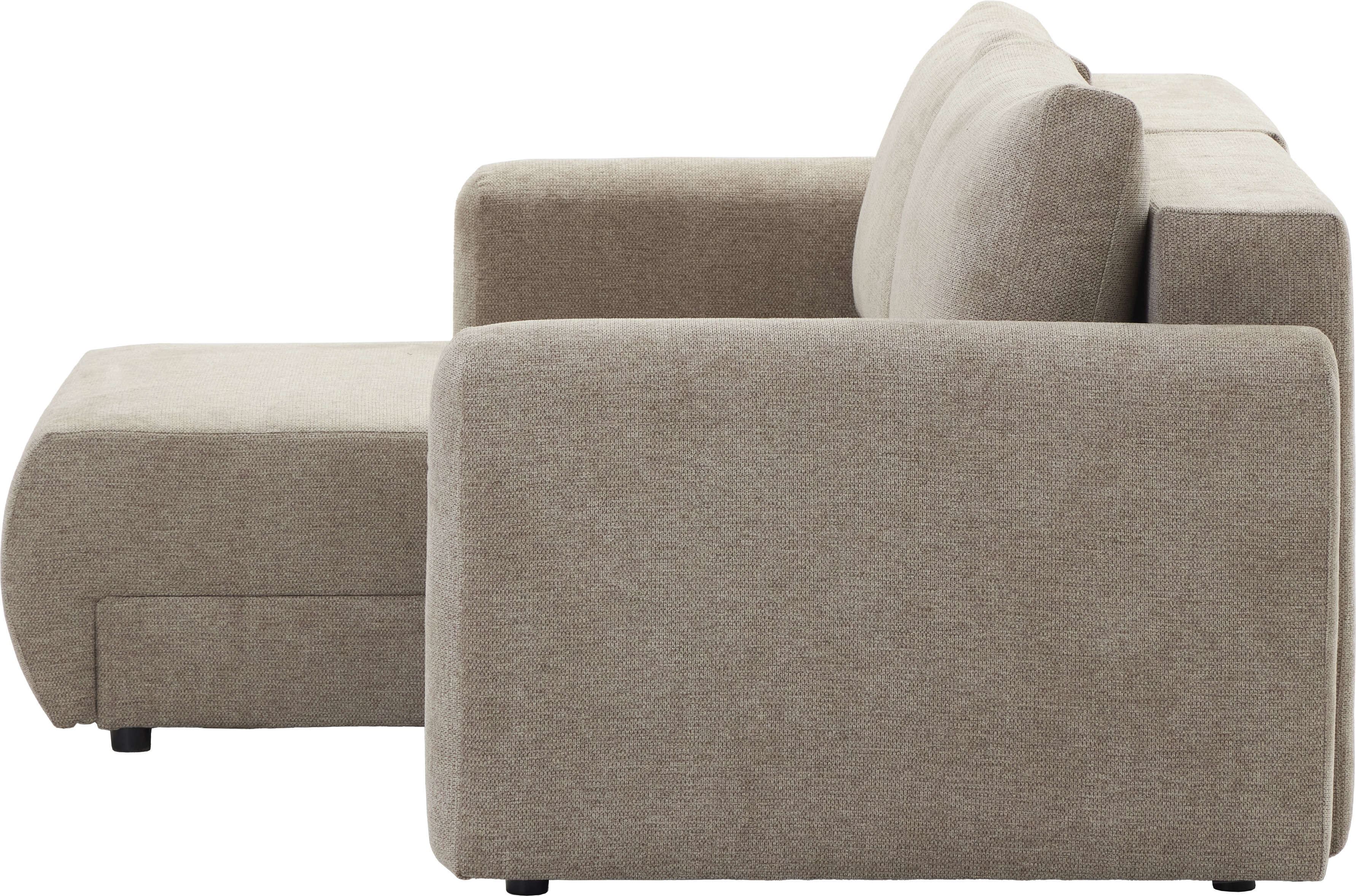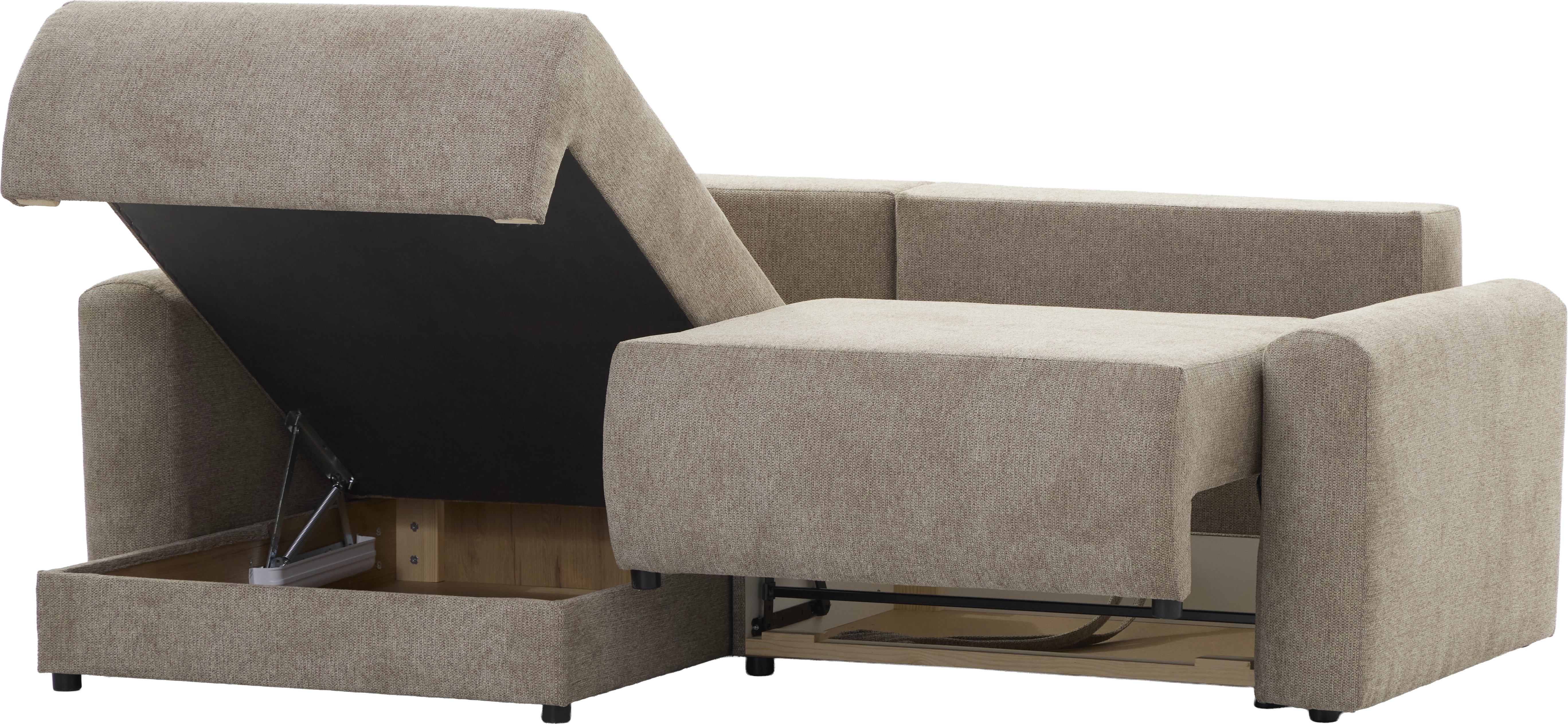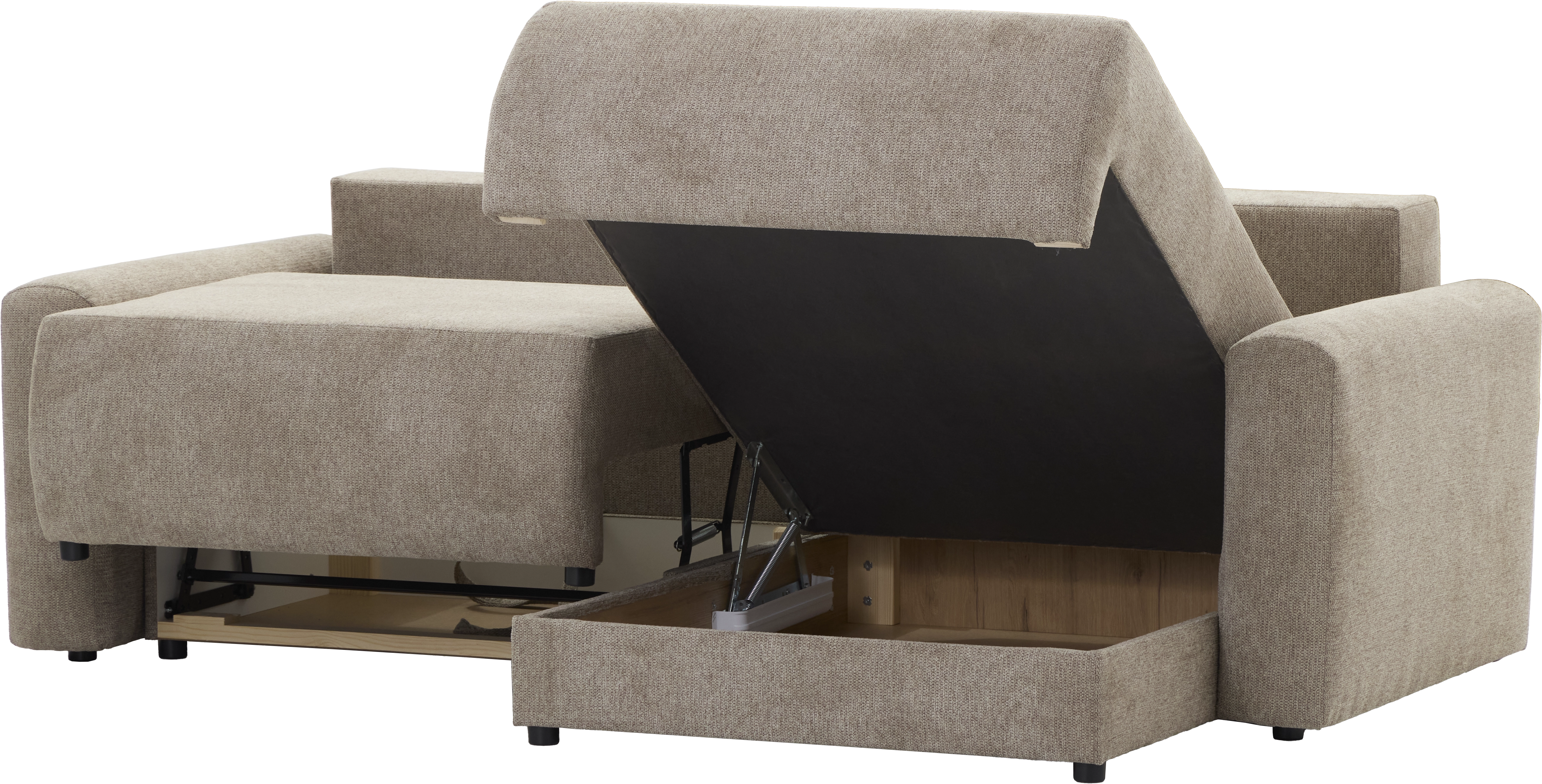 Narożnik (uniwersalny) "SOFTINA" w kolorze R2 (materiał Rojal latte) to nowoczesny i funkcjonalny mebel, który zapewni komfort zarówno w codziennym wypoczynku, jak i w trakcie snu. Jasna, ciepła tapicerka w odcieniu latte nadaje wnętrzu przytulności i subtelnej elegancji, łatwo komponując się z różnymi stylami aranżacji. Mebel posiada funkcję spania z powierzchnią o wymiarach 155x202 cm, co czyni go praktycznym rozwiązaniem do salonu, pokoju dziennego lub przestrzeni gościnnej. Pojemnik na pościel zwiększa funkcjonalność narożnika, pozwalając na wygodne przechowywanie kołder, poduszek czy koców. Układ narożnika jest uniwersalny, co oznacza, że stronę montażu (lewą lub prawą) można dostosować podczas składania, zależnie od potrzeb i układu pomieszczenia. Wymiary narożnika to 245x80x165 cm, co zapewnia dużo miejsca do siedzenia i wypoczynku. To doskonały wybór dla osób szukających połączenia wygody, stylu i praktyczności.