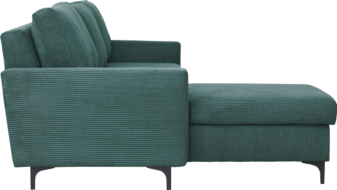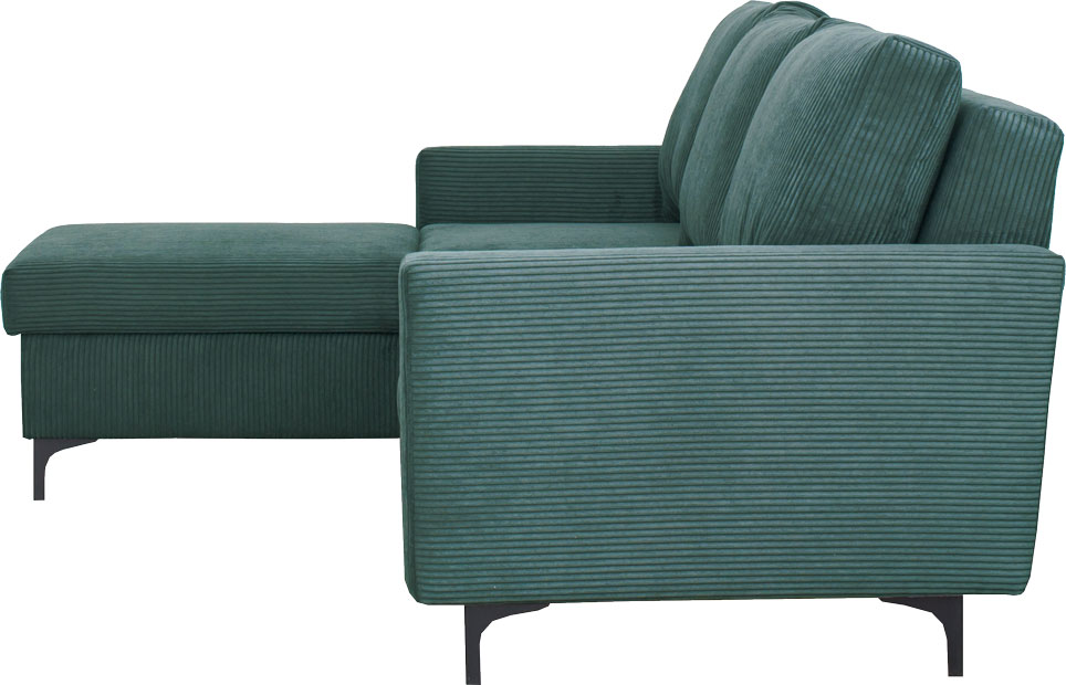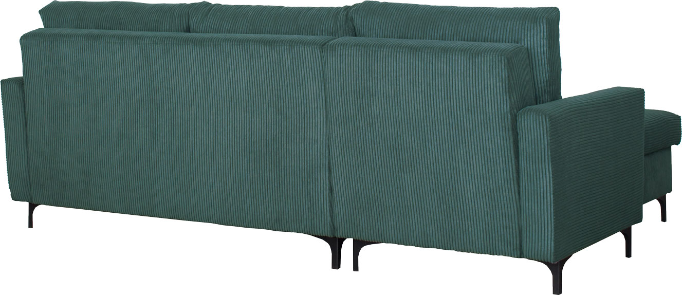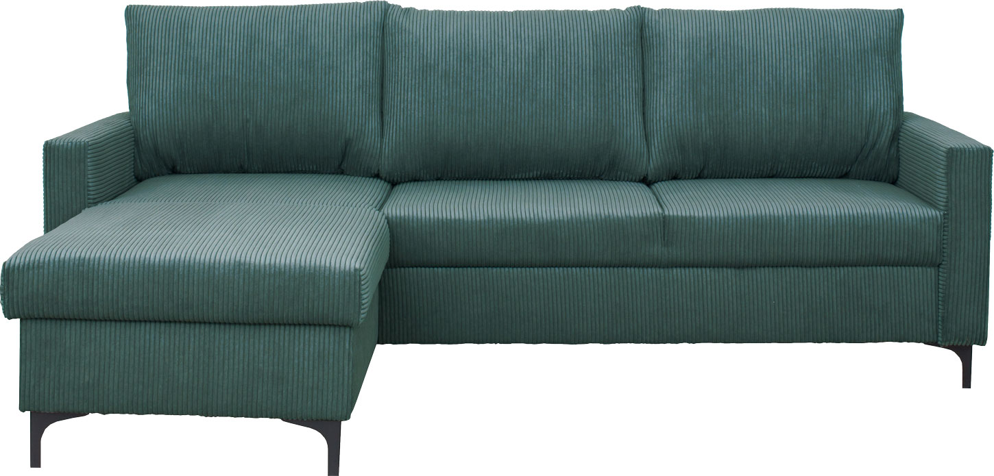 Narożnik tapicerowany Milano w materiale sztruks to wyjątkowe połączenie elegancji i komfortu. Materiał sztruks charakteryzuje się wyraźną, teksturowaną strukturą, która dodaje meblowi ciepłego i przytulnego wyglądu. Jego subtelne prążki wprowadzają do wnętrza elementy klasyki i nowoczesności jednocześnie. Wyposażony w praktyczną skrzynię na pościel, narożnik oferuje dodatkową przestrzeń do przechowywania, co pomaga w utrzymaniu porządku. Nowoczesny automat do rozkładania umożliwia łatwe przekształcenie narożnika w wygodne łóżko, a metalowe stopki w kolorze czarnym dodają nowoczesnego akcentu i umożliwiają swobodne wjeżdżanie robota sprzątającego pod mebel. Narożnik Milano w materiale sztruks łączy estetykę z funkcjonalnością, tworząc stylowe i praktyczne rozwiązanie do każdego wnętrza.