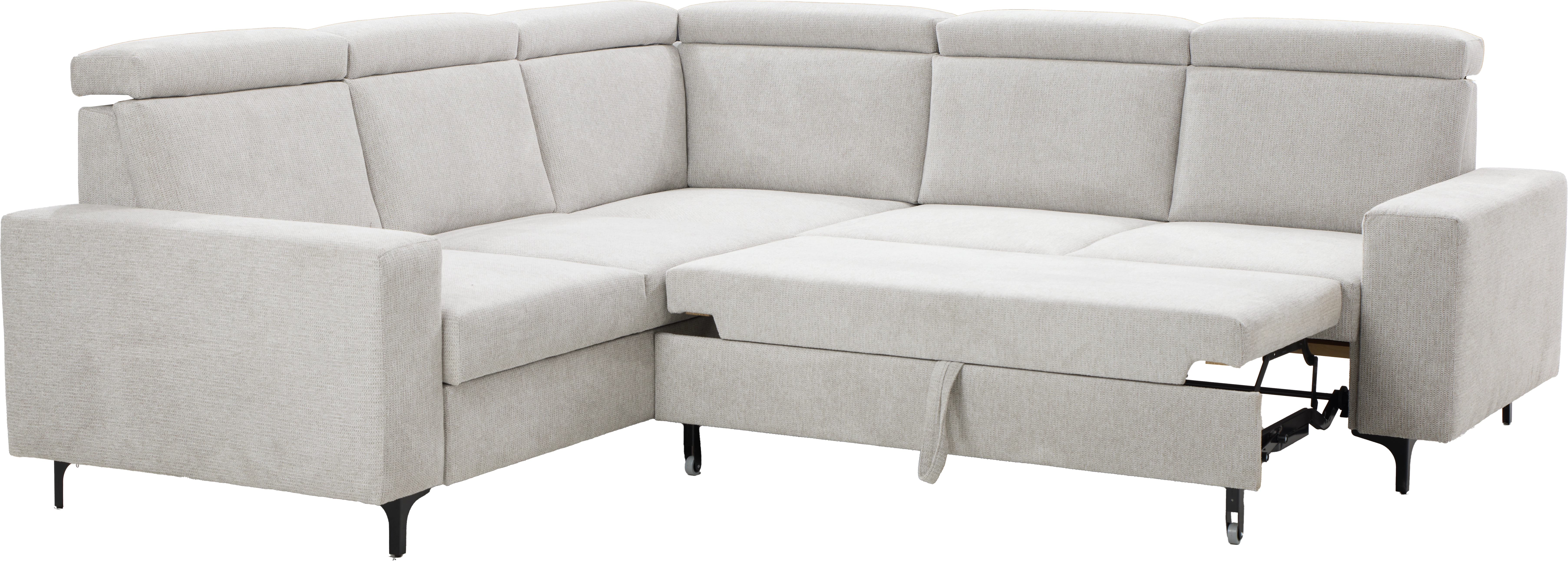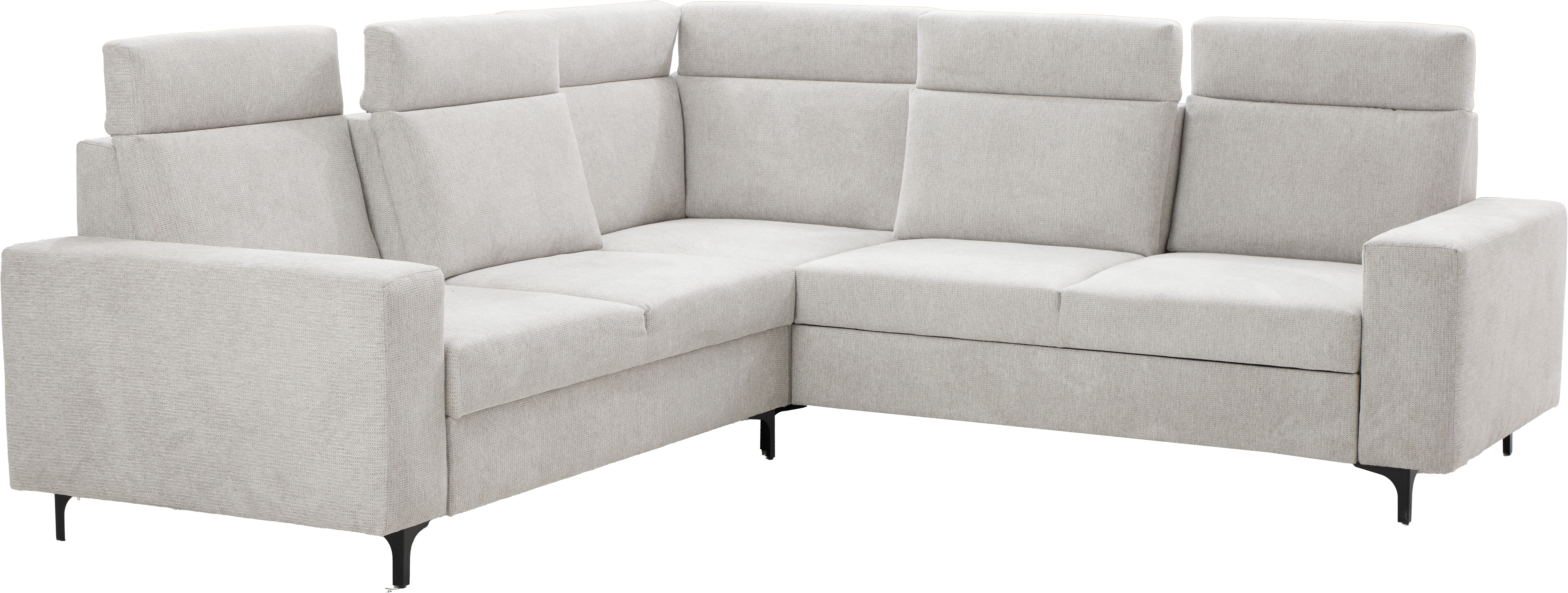 Narożnik „NAIROBI” R3 to wyjątkowo komfortowy i elegancki mebel stworzony z myślą o dużych, nowoczesnych wnętrzach. Utrzymany w subtelnym odcieniu Rojal jasny szary (R3), nadaje przestrzeni lekkości i stylowej harmonii, świetnie komponując się z wieloma aranżacjami. Model wyposażony jest w funkcję spania o powierzchni 128 × 205 cm, co pozwala szybko przekształcić narożnik w wygodne miejsce do nocnego wypoczynku. Ogromnym atutem są również ruchome zagłówki, które umożliwiają indywidualne dopasowanie podparcia głowy i zwiększają komfort codziennego użytkowania. Narożnik ma 263 cm szerokości, 98 cm wysokości oraz 263 cm głębokości, dzięki czemu oferuje bardzo dużo przestrzeni do siedzenia i relaksu. Nairobi to połączenie funkcjonalności, wygody i nowoczesnego designu – idealny wybór dla osób ceniących przestrzeń i ponadczasową elegancję.
