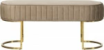 Ławka tapicerowana może być doskonałym rozwiązaniem, jeśli brakuje miejsca na krzesła. Może służyć zarówno przy stole jak i w przedpokoju czy jako praktyczny i dekoracyjny dodatek w dowolnym pomieszczeniu.Złote nogi podkreślają elegancki styl mebla.