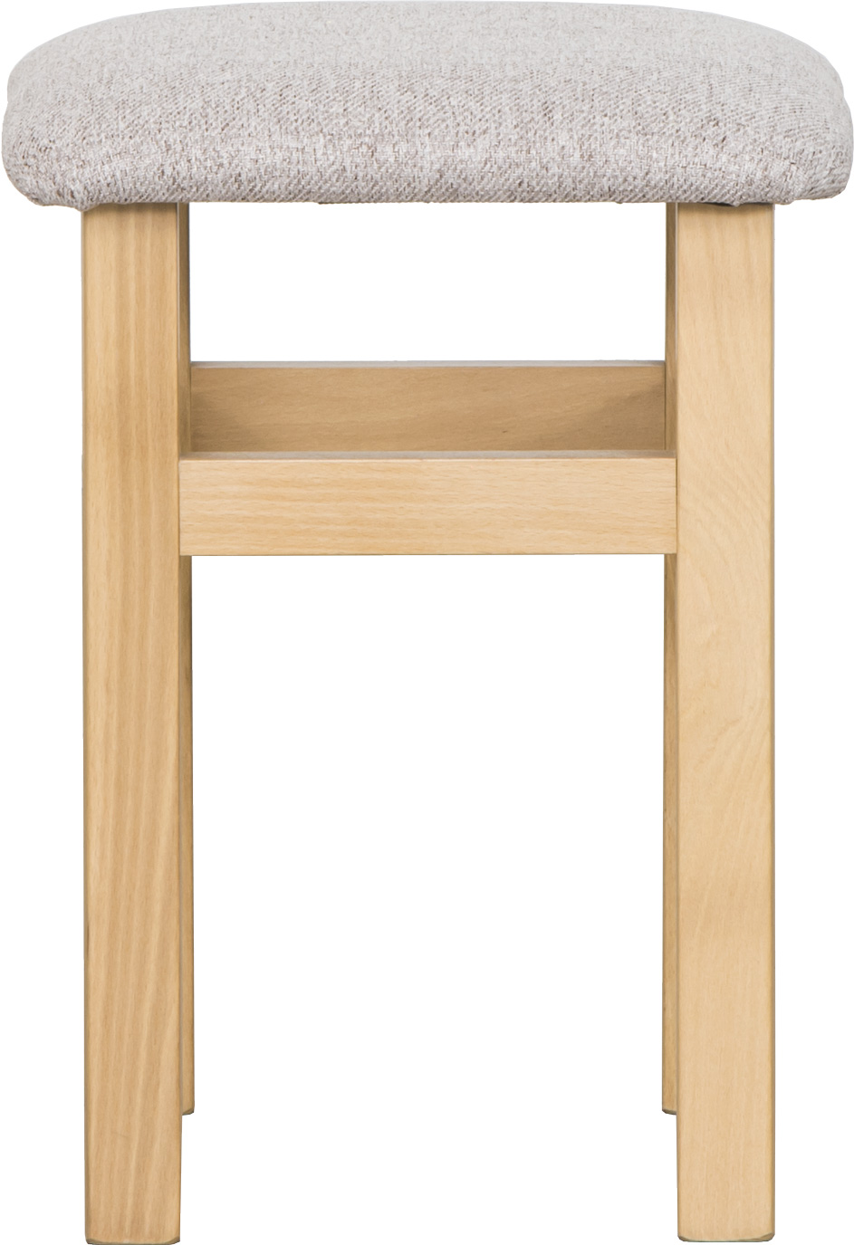 Taboret ze stelażem w kolorze dąb Soma ciemny i obiciem z materiału G5 (Gustimo latte) to elegancki i uniwersalny dodatek do wnętrza. Głęboki odcień drewna stelaża harmonijnie łączy się z jasnym, kremowym obiciem w odcieniu latte, nadając meblowi ciepły i stylowy wygląd. Idealny do salonu, sypialni lub przedpokoju, zapewnia wygodę i estetykę.