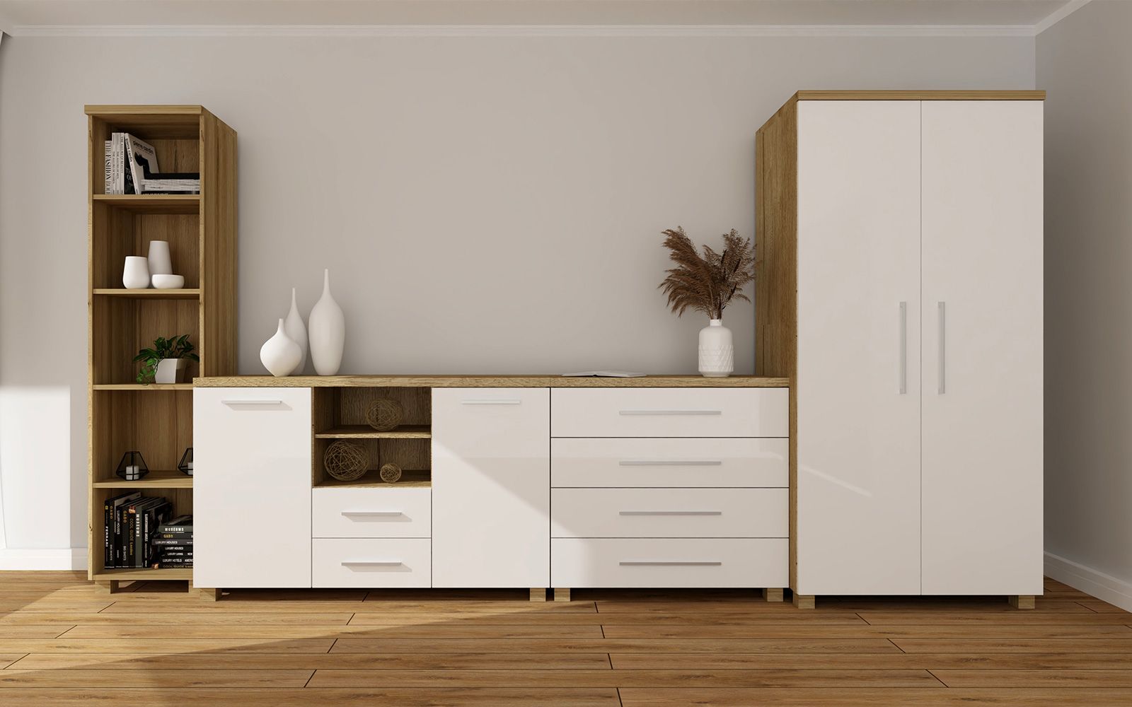 Kolekcja mebli pokojowych Panama w kolorze dąb soma ciemny to elegancka i funkcjonalna linia, idealna do nowoczesnych wnętrz. Charakteryzuje się ciemnym odcieniem drewna, który dodaje wnętrzom ciepła i przytulności. Meble z tej kolekcji cechują się prostymi, ale stylowymi liniami, co sprawia, że są uniwersalne i łatwo komponują się z różnymi dekoracjami. Solidne wykonanie z wysokiej jakości materiałów zapewnia trwałość i odporność na codzienne użytkowanie. Kolekcja Panama to doskonały wybór dla tych, którzy cenią elegancję i praktyczność w swoim domu.