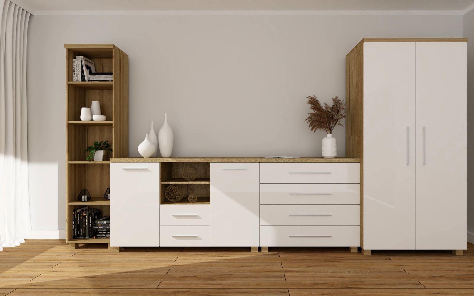 Otwarty regał słupkowy z systemu Panama to stylowy i praktyczny element wyposażenia wnętrza. Zapewnia on dużo miejsca do przechowywania różnych przedmiotów, jednocześnie dodając nowoczesnego uroku i lekkości aranżacji. Idealnie pasuje do nowoczesnych oraz minimalistycznych wnętrz, oferując możliwość eksponowania dekoracji lub przechowywania codziennych potrzebnych rzeczy.