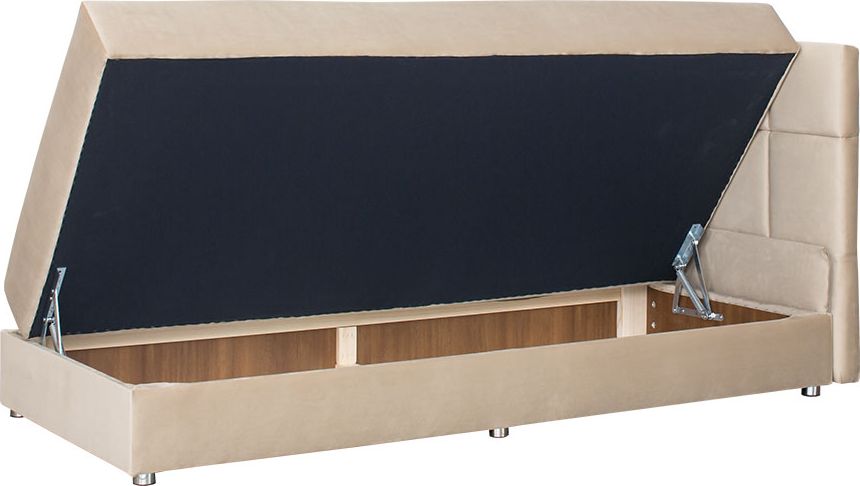 Nowoczesny tapczan Rio to wygodny oraz funkcjonalny mebel tapicerowany wykonany w szerokiej gamie kolorystycznej. Idealnie sprawdzi się w małej sypialni, pokoju młodzieżowym oraz w hotelach i pensjonatach. Eleganckie przeszycia nadają mu szyku i stylu. Tapicerowane wezgłowie posłuży jako wygodne oparcie dla pleców przy czytaniu książek, bądź oglądaniu tv.
