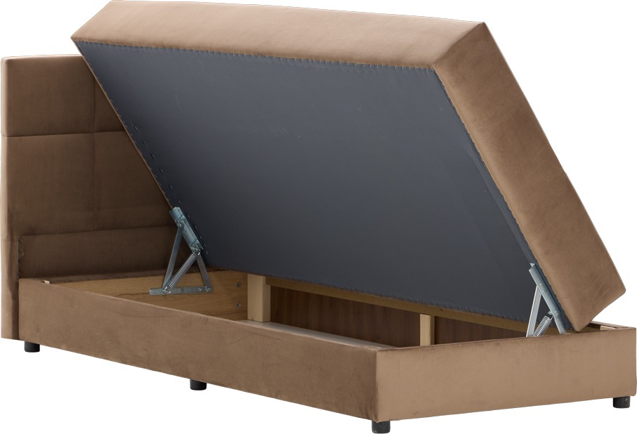 Nowoczesny tapczan Rio to wygodny oraz funkcjonalny mebel tapicerowany wykonany w szerokiej gamie kolorystycznej. Idealnie sprawdzi się w małej sypialni, pokoju młodzieżowym oraz w hotelach i pensjonatach. Eleganckie przeszycia nadają mu szyku i stylu. Tapicerowane wezgłowie posłuży jako wygodne oparcie dla pleców przy czytaniu książek, bądź oglądaniu tv.
