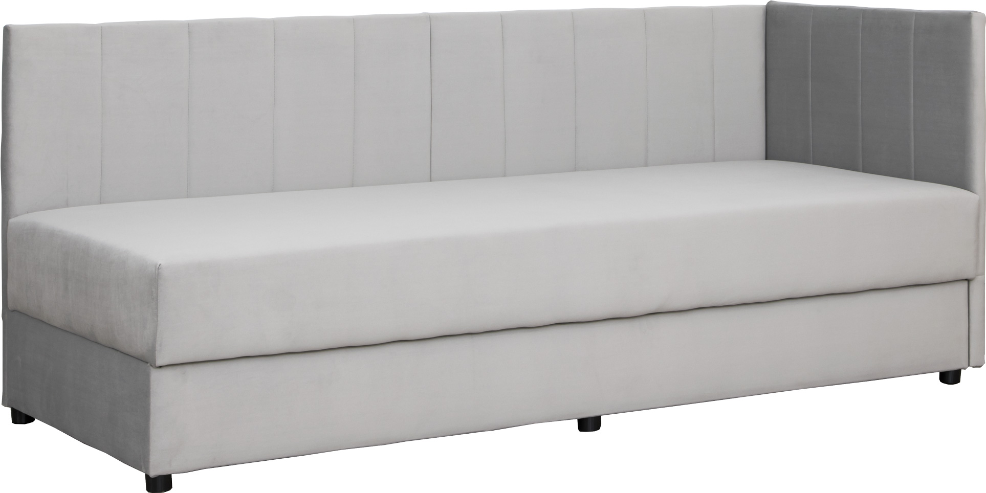 Wygodny tapczan Manilla idealnie sprawdzi się zarówno w pokoju dziecięcym, młodzieżowym jak i w hotelach. Nowoczesny design podkreślają jego pionowe przeszycia. Tapicerowane, miękkie wezgłowie i osłona boczna stanowią ochronę przed uderzeniem o ścianę oraz sprawdzą się jako wygodne oparcie dla pleców podczas czytania czy oglądania telewizji.
