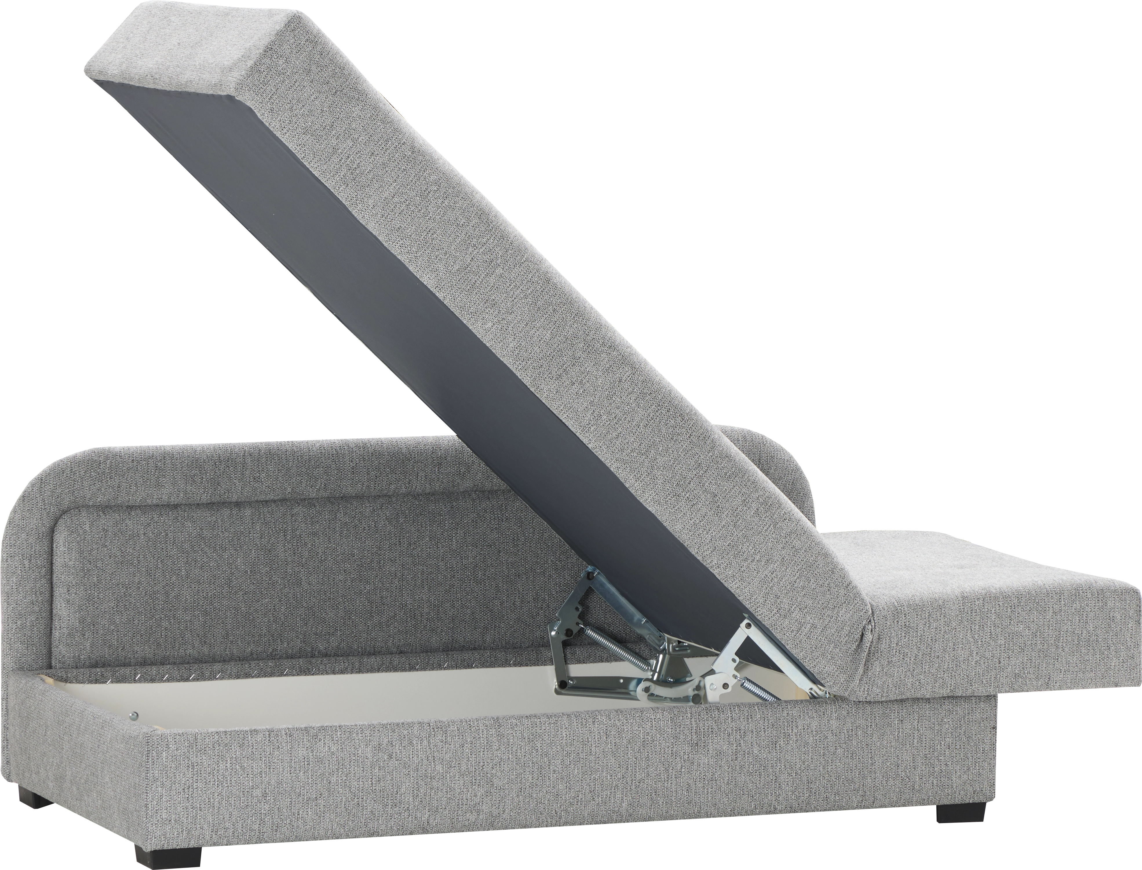 Prosta forma tapczanu zapewnia wygodne miejsce do codziennego wypoczynku, a prawostronna wersja pozwala na dopasowanie mebla do układu pomieszczenia. Dzięki kompaktowej konstrukcji tapczan dobrze sprawdzi się również w mniejszych przestrzeniach.