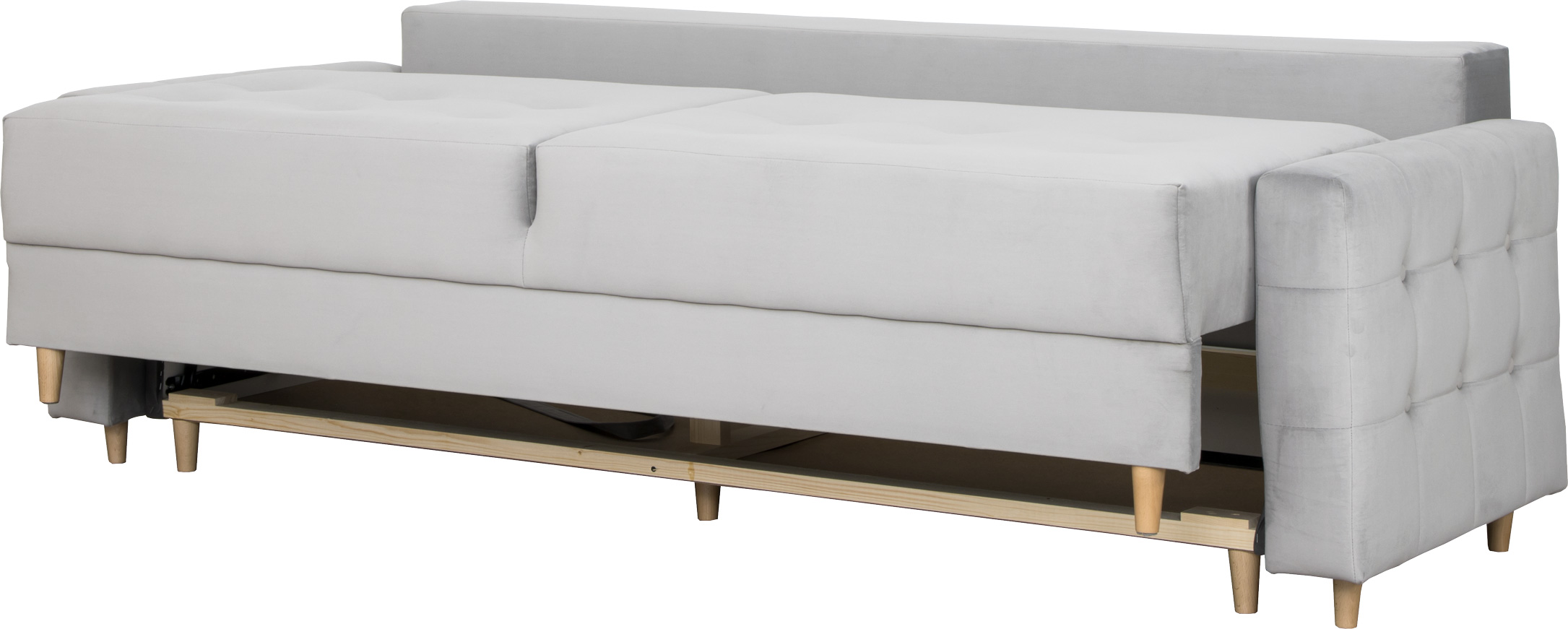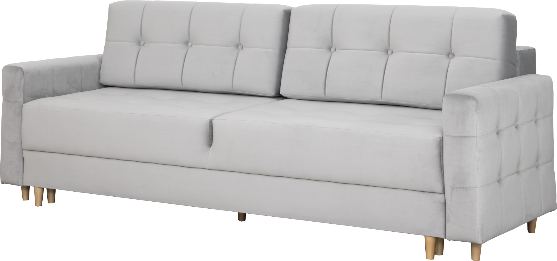 Piękna i komfortowa sofa Paris o nowoczesnym designie, wspaniale wkomponuje się w nowoczesne jak i klasyczne wnętrza. Wykonana z delikatnego pikowanego materiału, z nóżkami w skandynawskim stylu. Powierzchnia spania: 200cm x 137cm.
