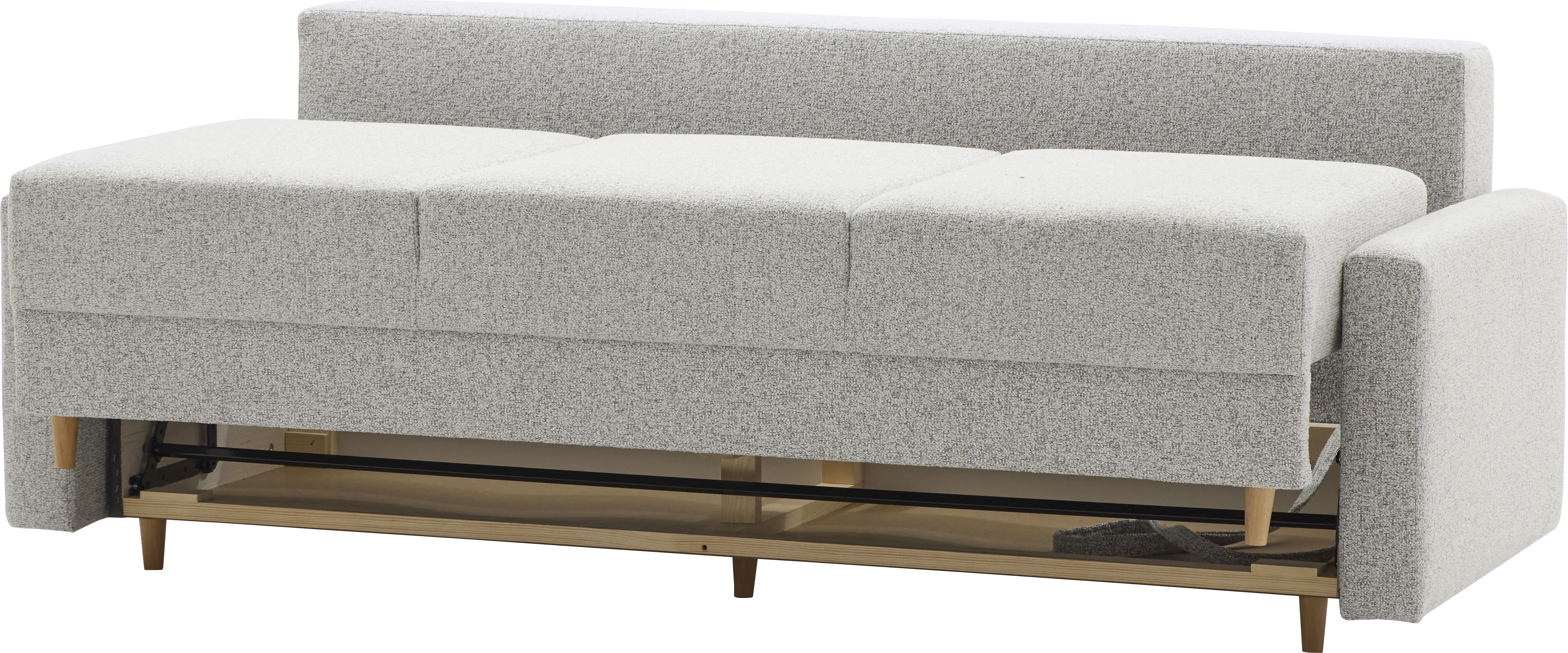 Kanapa Milano w materiale Sotello szarym to elegancka i wygodna opcja do nowoczesnych wnętrz. Wymiary 227 x 86 x 101 cm zapewniają komfortową przestrzeń do siedzenia, a po rozłożeniu powierzchnia do spania 155 x 200 cm oferuje wygodne miejsce do odpoczynku. Szary kolor i minimalistyczny design idealnie pasują do różnych aranżacji, wprowadzając do wnętrza subtelną elegancję.