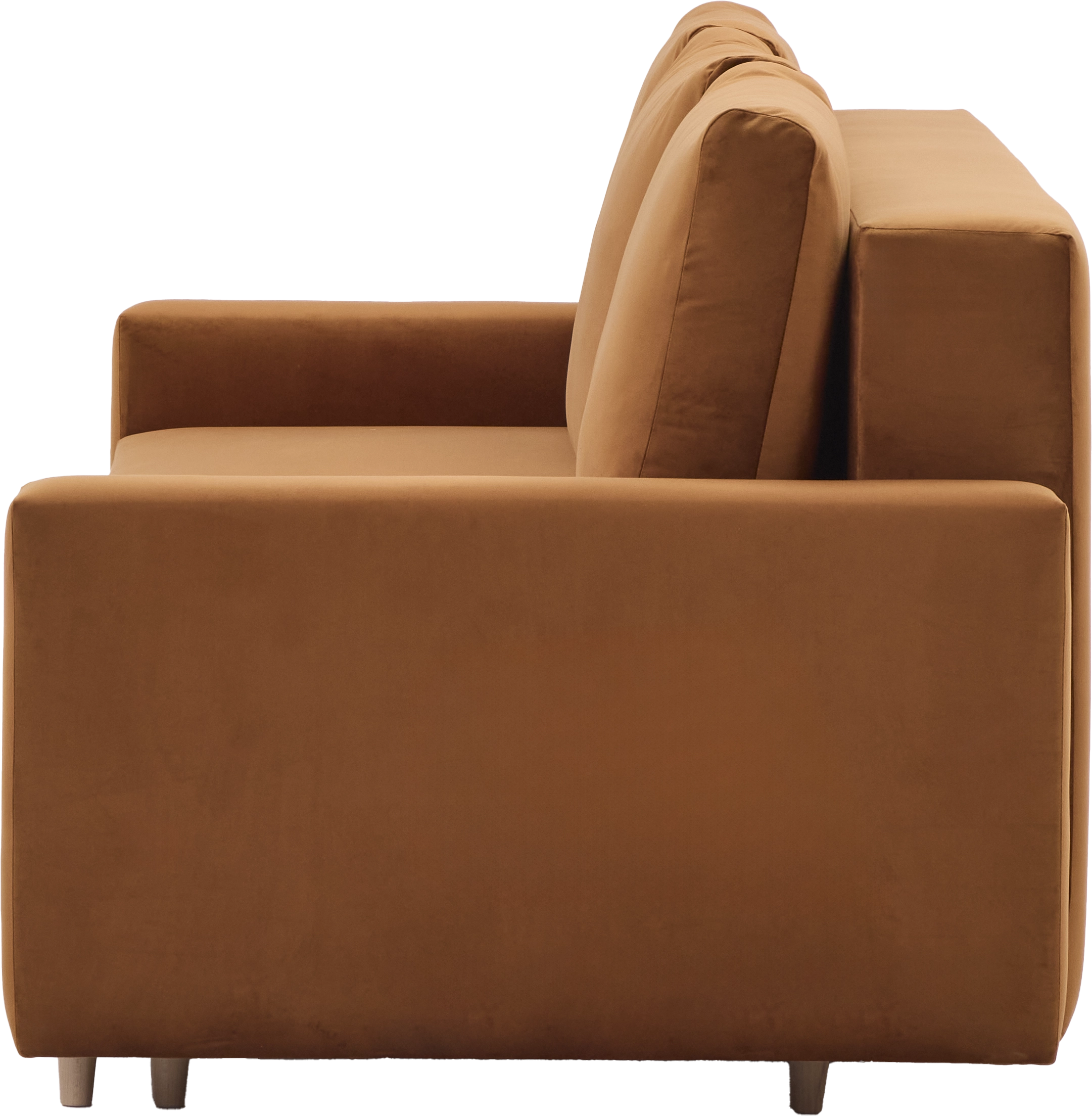Kanapa Milano w materiale Plusz rudy to elegancki i wygodny mebel, idealny do nowoczesnych wnętrz. Wymiary 227 x 86 x 101 cm zapewniają przestronną powierzchnię do siedzenia, a po rozłożeniu powierzchnia do spania 155 x 200 cm oferuje komfortowe miejsce do odpoczynku. Jej ciepły, rudy kolor wprowadza przytulną atmosferę, a stylowy design pasuje do różnych aranżacji salonu.