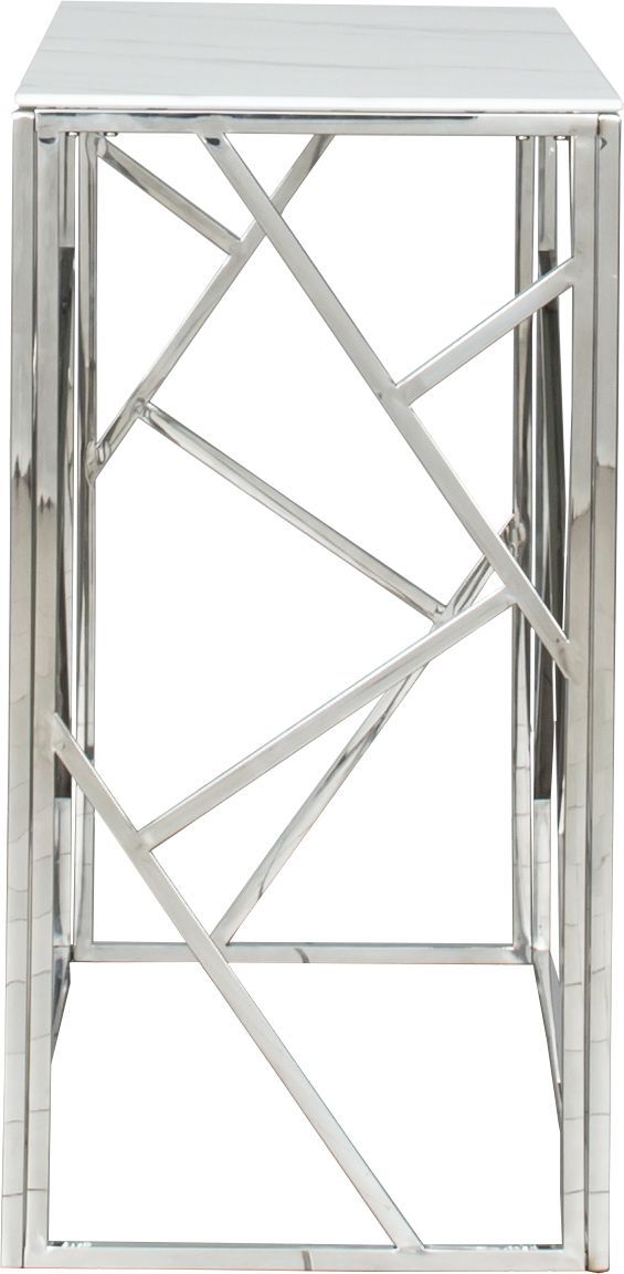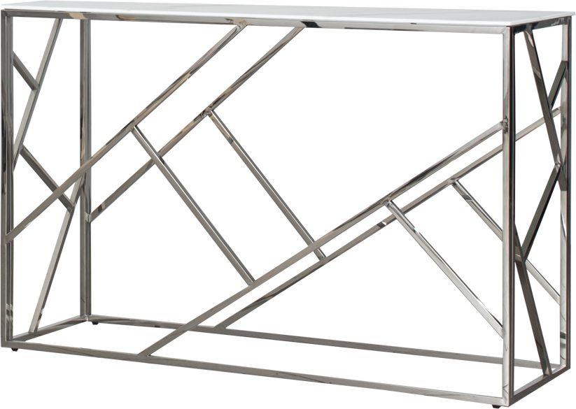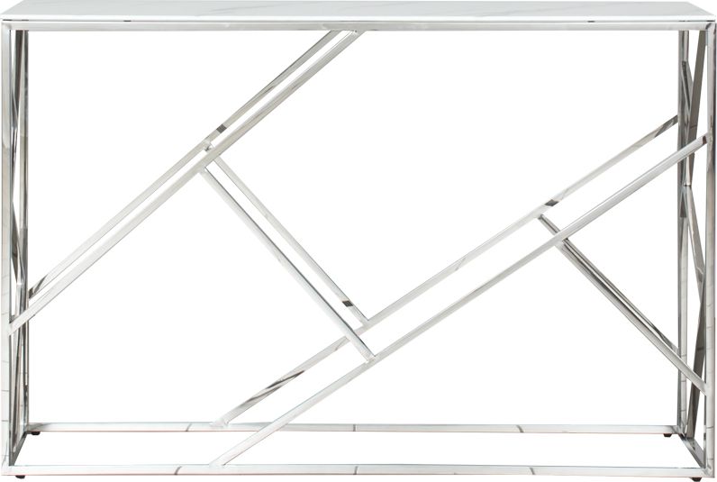 Unikalna konsola SALVERI wprowadzi do wnętrza odrobinę elegancji i luksusu. Połączenie metalowych nóg w kolorze srebrnym i marmurowego blatu idealnie wkomponuje się w nowoczesne i stylowe pomieszczenia. Ozdobne, geometryczne wycięcia, prostokątny kształt zadowoli miłośników innowacyjnego podejścia do przestrzeni w domu czy biurze, nadając im charakteru i wyrazistości.