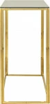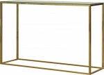 Unikalna konsola GOLDIMOS wprowadzi do wnętrza odrobinę elegancji i luksusu. Połączenie metalowych nóg w kolorze złotym i szklanego blatu idealnie wkomponuje się w nowoczesne i stylowe pomieszczenia. Ozdobne, geometryczne wycięcia, prostokątny kształt zadowoli miłośników innowacyjnego podejścia do przestrzeni w domu czy biurze, nadając im charakteru i wyrazistości.