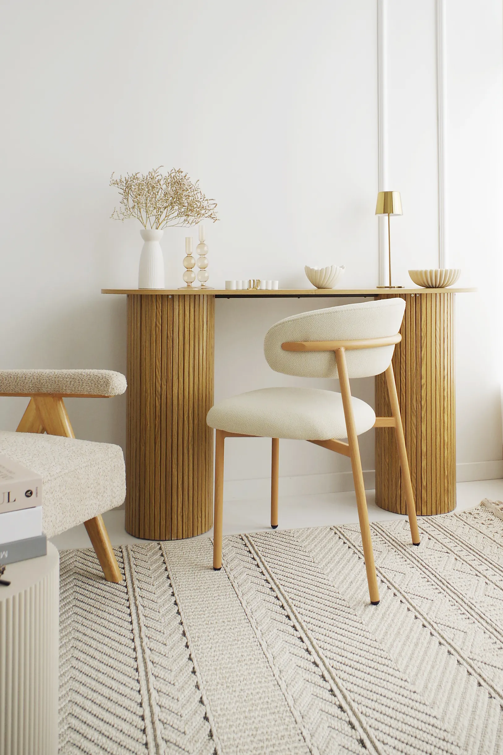 Konsolka SIENO to elegancki i funkcjonalny mebel, który wprowadzi do wnętrza styl i praktyczność. Wykonana w kolorze dębu, emanuje naturalnym ciepłem i uniwersalnym charakterem, który doskonale pasuje do nowoczesnych, klasycznych i skandynawskich aranżacji. Dzięki wymiarom 140x40x82,5 cm oferuje przestronną powierzchnię do ekspozycji dekoracji, roślin czy praktycznych akcesoriów. Idealnie sprawdzi się w przedpokoju, salonie lub gabinecie, dodając wnętrzu elegancji i harmonii.