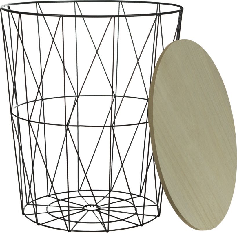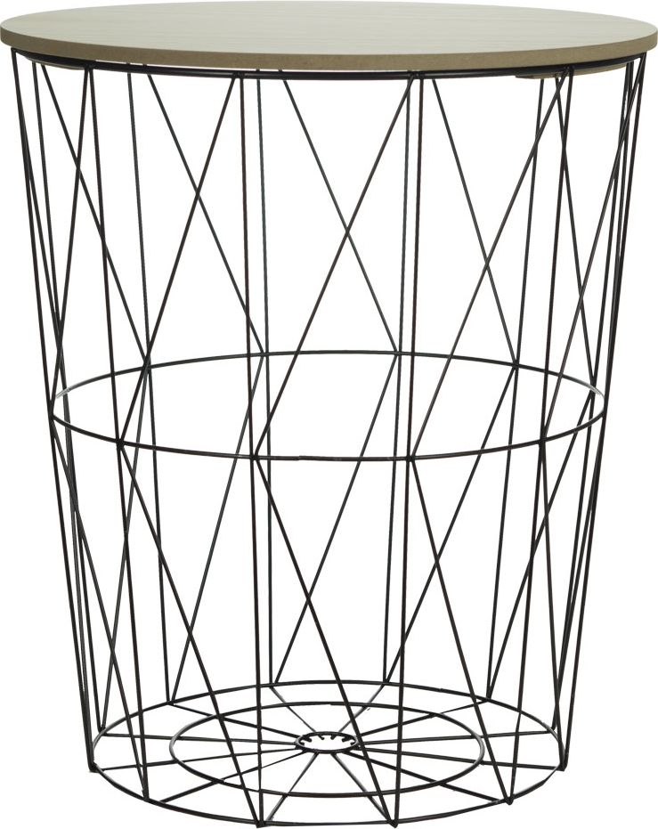 Okrągły stolik druciany Marino w kolorze czarnym to modernistyczny, niezwykle funkcjonalny mebel. Umożliwia przechowywanie poduszek, kocy, prasy czy książek. Zdejmowany blat sprawdzi się jako taca czy podkładka do pisania.