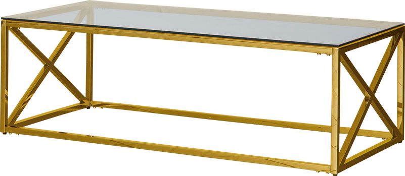 Unikalny stolik GOLDIMOS wprowadzi do wnętrza odrobinę elegancji i luksusu. Połączenie metalowych nóg w kolorze złotym i szklanego blatu idealnie wkomponuje się w nowoczesne i stylowe pomieszczenia. Ozdobne, geometryczne wycięcia, prostokątny kształt zadowoli miłośników innowacyjnego podejścia do przestrzeni w domu czy biurze, nadając im charakteru i wyrazistości.