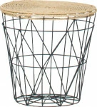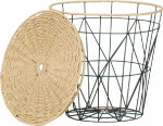 Okrągły stolik druciany TASSO w kolorze czarnym to elegancki i nowoczesny mebel, który łączy styl z funkcjonalnością. Jego druciana konstrukcja wprowadza nowoczesny akcent do wnętrza, jednocześnie oferując praktyczne rozwiązania. Stolik zapewnia przestrzeń do przechowywania poduszek, koców, prasy czy książek, a zdejmowany blat może służyć jako taca lub podkładka do pisania. Dzięki swojej wszechstronności, stolik TASSO doskonale sprawdza się w różnych aranżacjach, dodając elegancji i funkcjonalności każdemu pomieszczeniu.