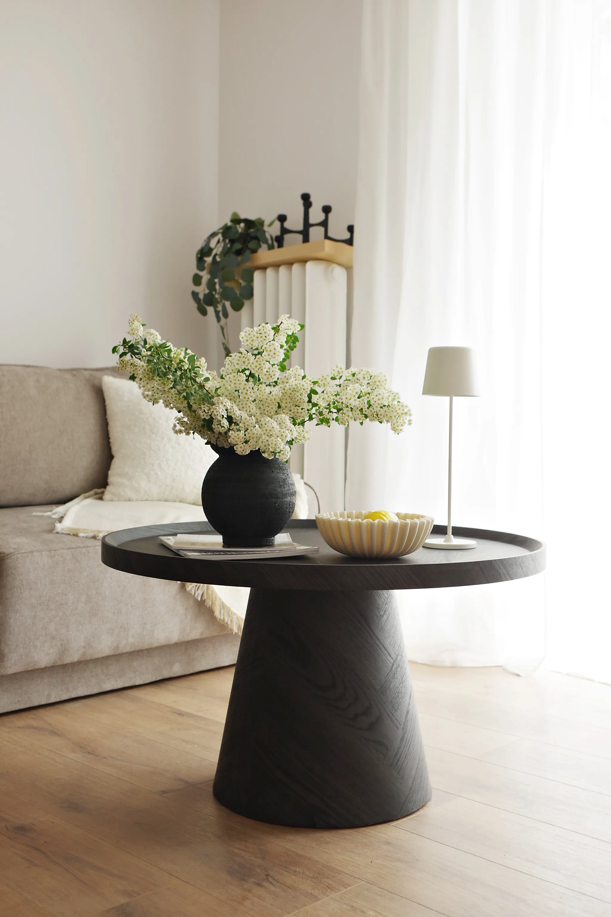 Stolik kawowy NATUROS w eleganckim czarnym kolorze to stylowy dodatek, który doda wnętrzu nowoczesnego charakteru. Jego minimalistyczny design i matowe wykończenie sprawiają, że idealnie komponuje się zarówno z industrialnymi, jak i klasycznymi aranżacjami. Solidna konstrukcja oraz prosta forma czynią go funkcjonalnym miejscem na filiżankę kawy, książki lub dekoracje, a głęboka czerń dodaje mu wyrafinowanej elegancji.