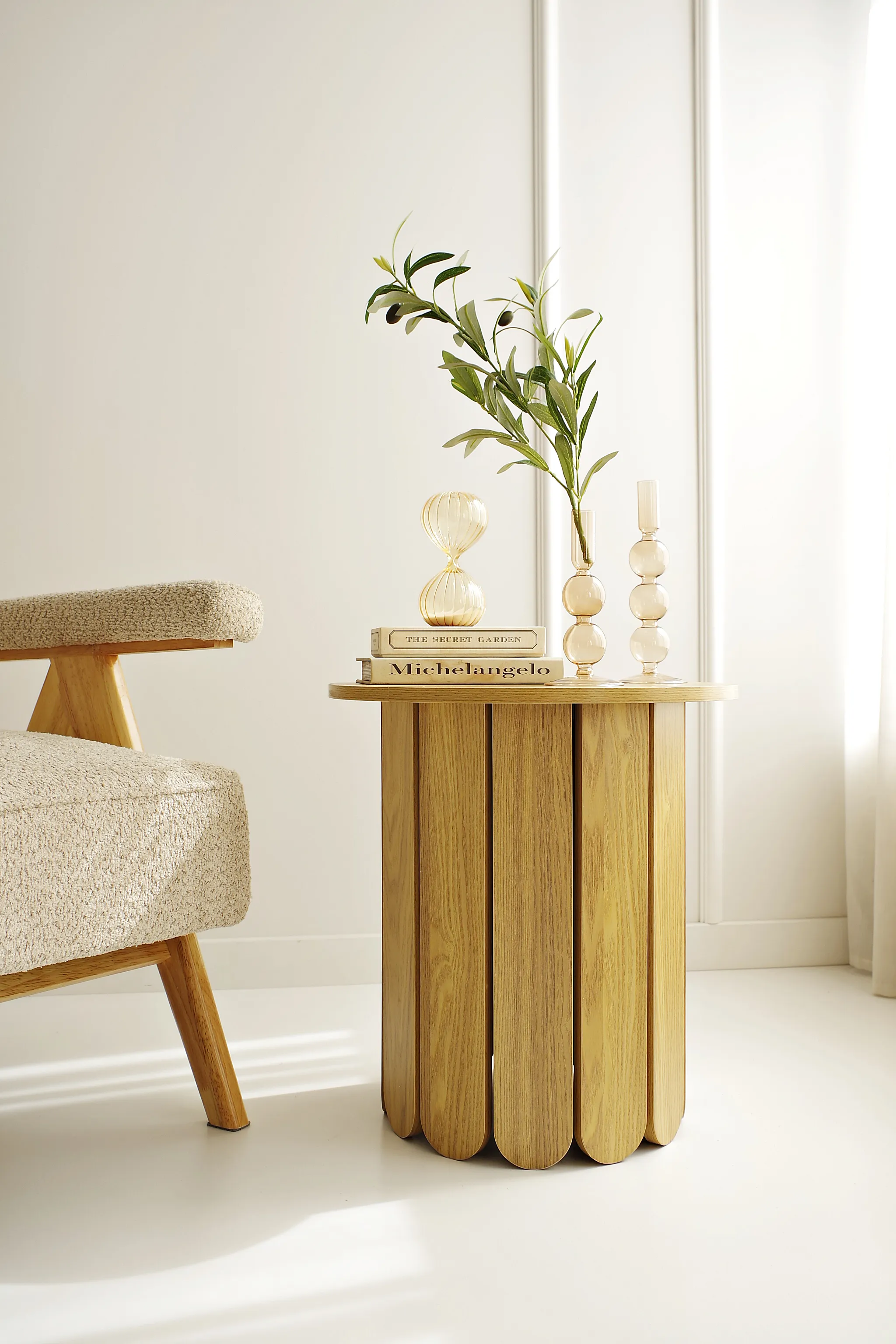 Stolik kawowy mały "NATUROS"-36, wykonany z MDF w kolorze dąb, to elegancki i praktyczny dodatek do wnętrza. Jego wymiary to 45 cm szerokości, 45 cm głębokości, 48,3 cm wysokości, a grubość blatu wynosi 1,5 cm. Dzięki kompaktowym rozmiarom idealnie sprawdzi się jako stolik pomocniczy w salonie, sypialni lub kąciku wypoczynkowym. Naturalna kolorystyka i minimalistyczny design sprawiają, że pasuje zarówno do nowoczesnych, jak i klasycznych aranżacji wnętrz.