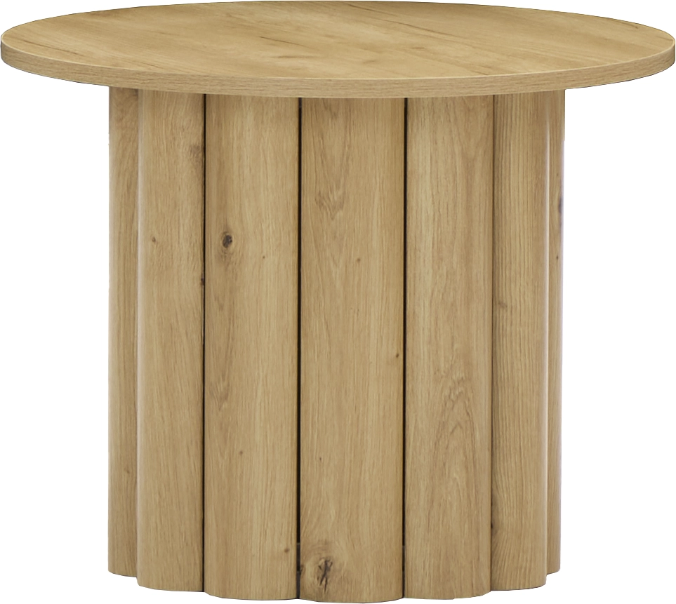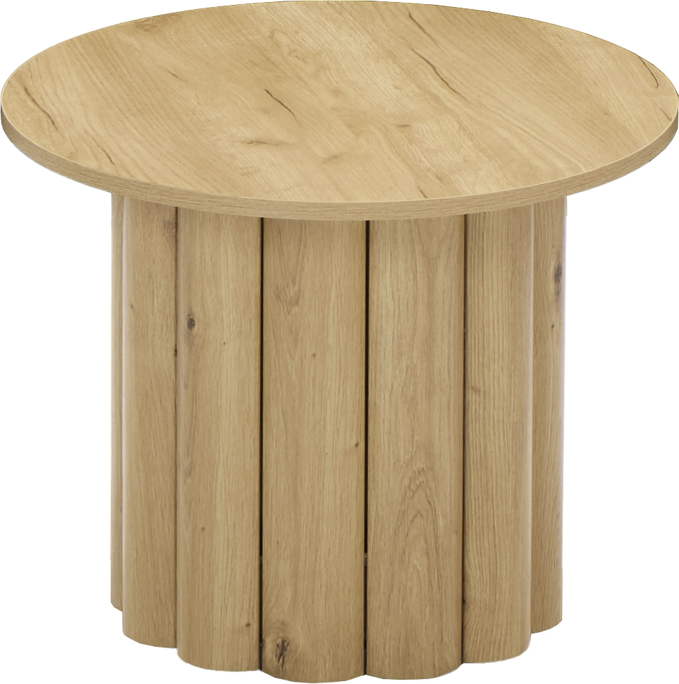 Stolik kawowy (mały) "NATUROS"-40 to kompaktowy i stylowy mebel, który doskonale sprawdzi się jako dodatek do większego stolika z tej samej serii lub jako samodzielny akcent w aranżacji wnętrza. Wykonany z solidnego MDF-u w kolorze dębu, łączy w sobie trwałość z naturalnym wyglądem. Okrągły blat o średnicy 50 cm i wysokości 40 cm sprawia, że stolik idealnie nadaje się do ustawienia przy sofie lub fotelu – jako miejsce na filiżankę kawy, książkę czy dekoracje. Jego minimalistyczna forma pasuje do wnętrz w stylu skandynawskim, japandi i boho, a naturalny odcień drewna wprowadza do pomieszczenia ciepło i harmonię.