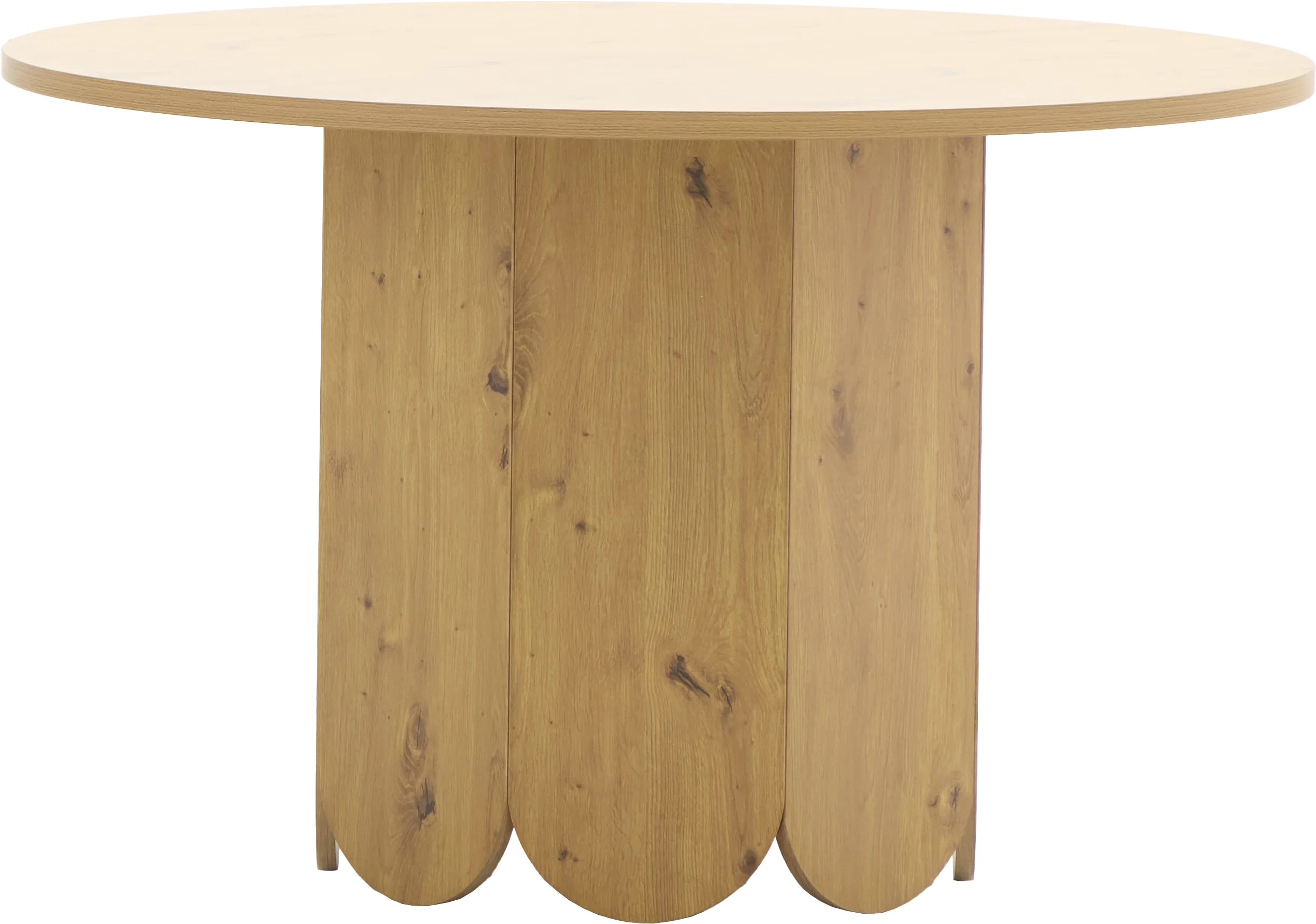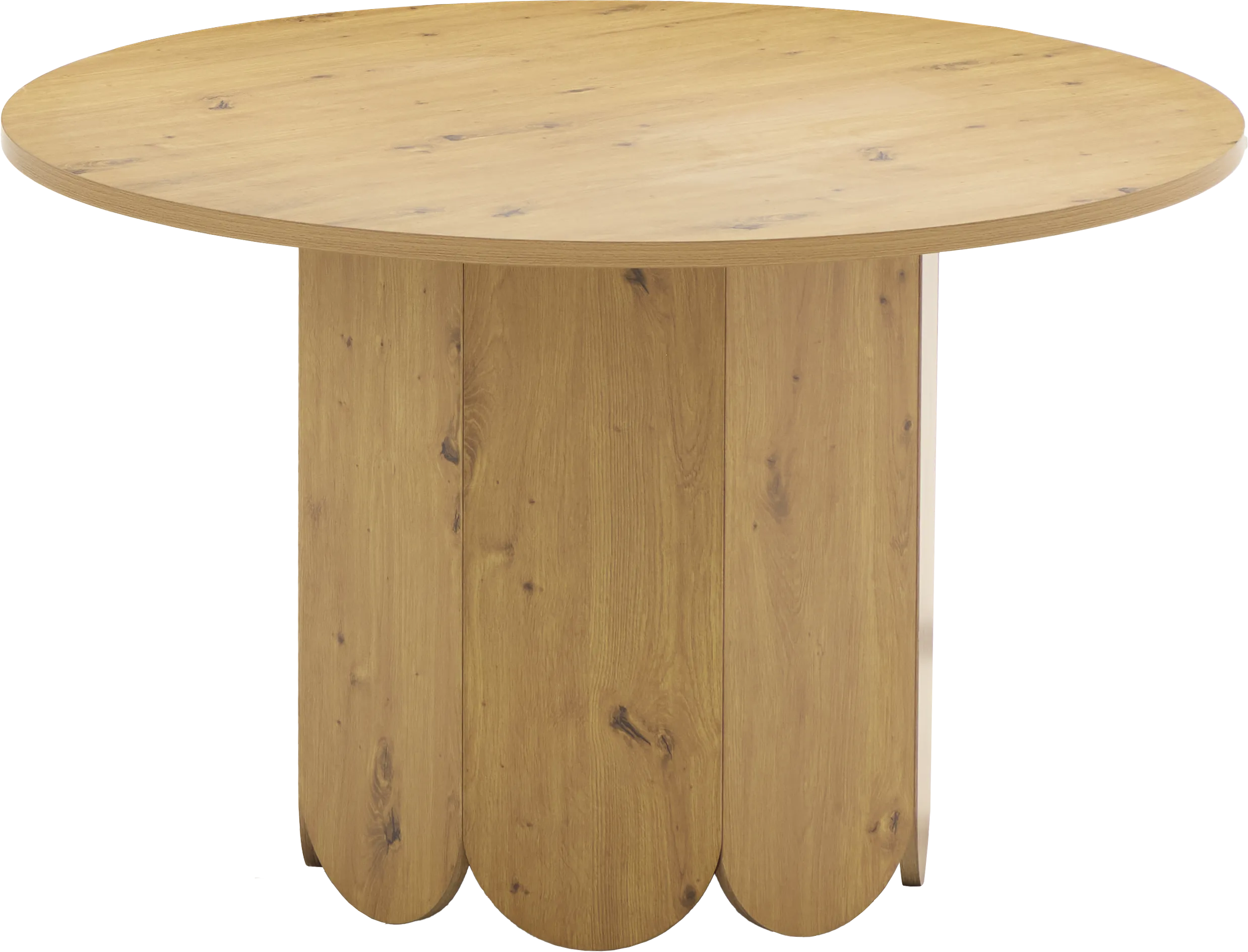Stół okrągły TULIP 43 w kolorze dąb to elegancki i funkcjonalny mebel do jadalni lub kuchni. Blat o średnicy 120 cm zapewnia wygodną przestrzeń dla czterech osób, a wysokość 75 cm sprawia, że pasuje do standardowych krzeseł. Okrągły kształt sprzyja wspólnym posiłkom i rozmowom, a wykończenie w kolorze dębu nadaje wnętrzu ciepły, naturalny charakter. Idealny do codziennego użytku i rodzinnych spotkań.