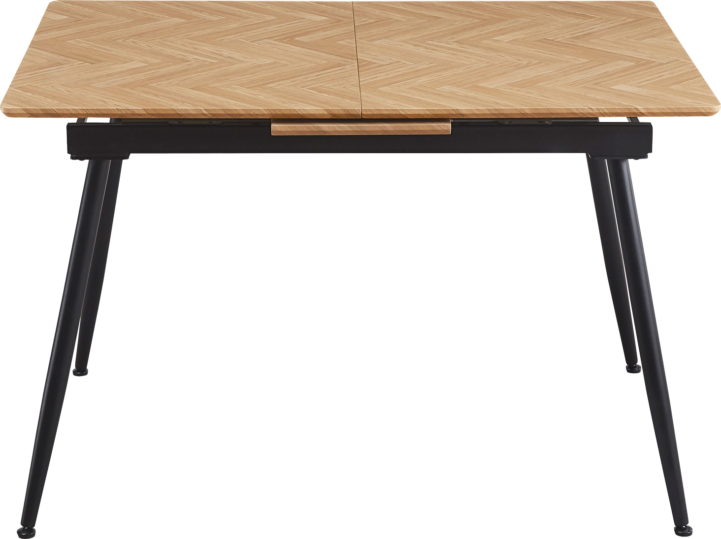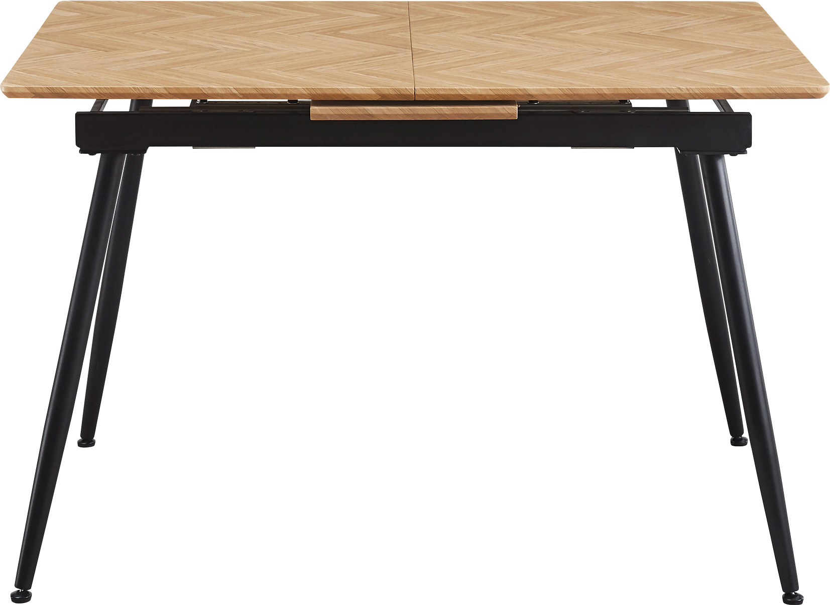 Stół rozkładany "SIENO"-37 to eleganckie i funkcjonalne rozwiązanie do jadalni. Posiada blat z MDF w kolorze dąb oraz solidne czarne nogi, które nadają mu nowoczesny charakter. Dzięki możliwości rozkładania z 120 cm do 150 cm, doskonale sprawdzi się zarówno na co dzień, jak i podczas spotkań w większym gronie. Wymiary stołu to 120-150 x 80 x 75 cm, co zapewnia komfort użytkowania. Jego uniwersalny design idealnie komponuje się z nowoczesnymi, loftowymi oraz klasycznymi wnętrzami.